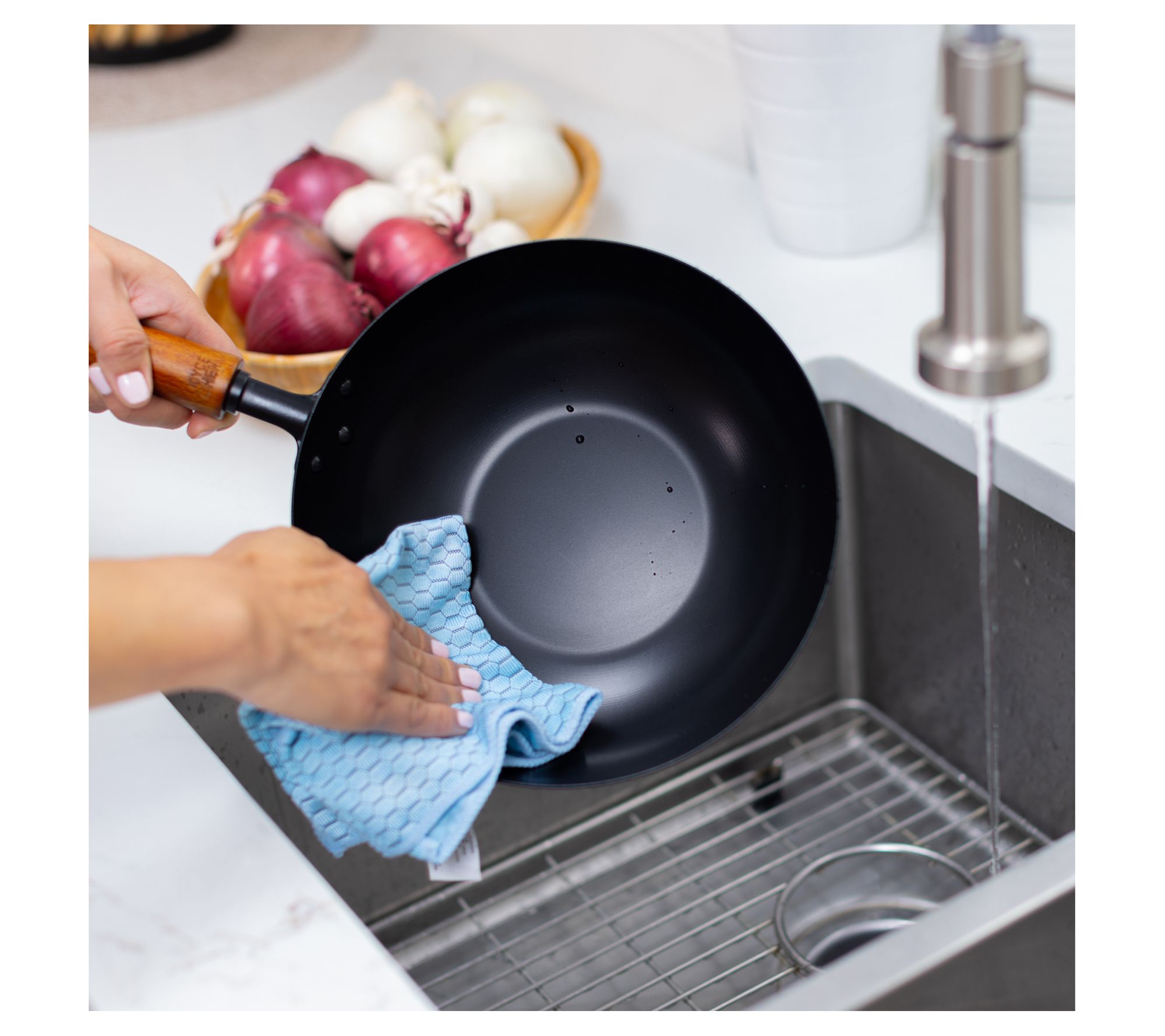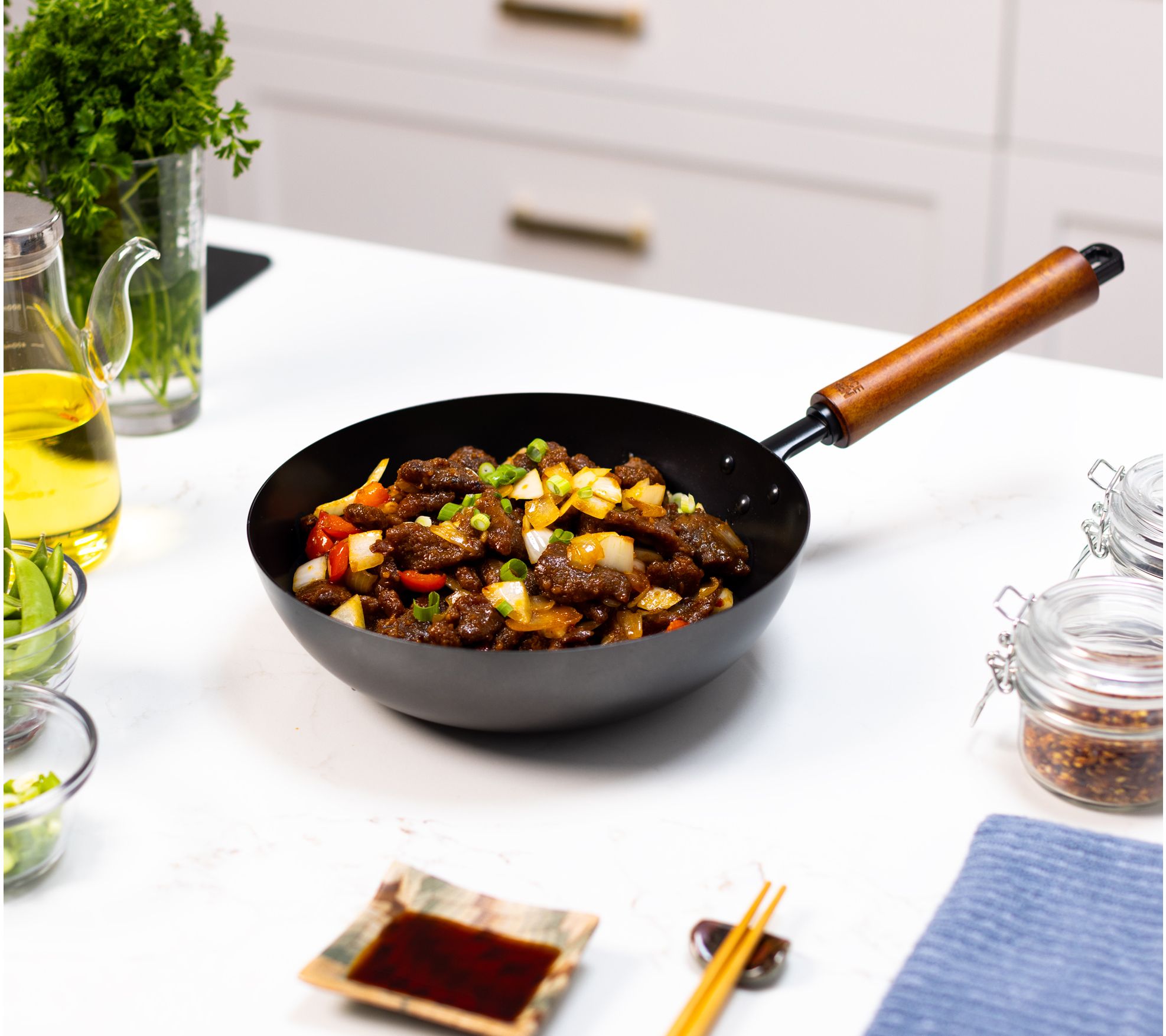 • 9.5" carbon steel ceramic nonstick stir fry pan