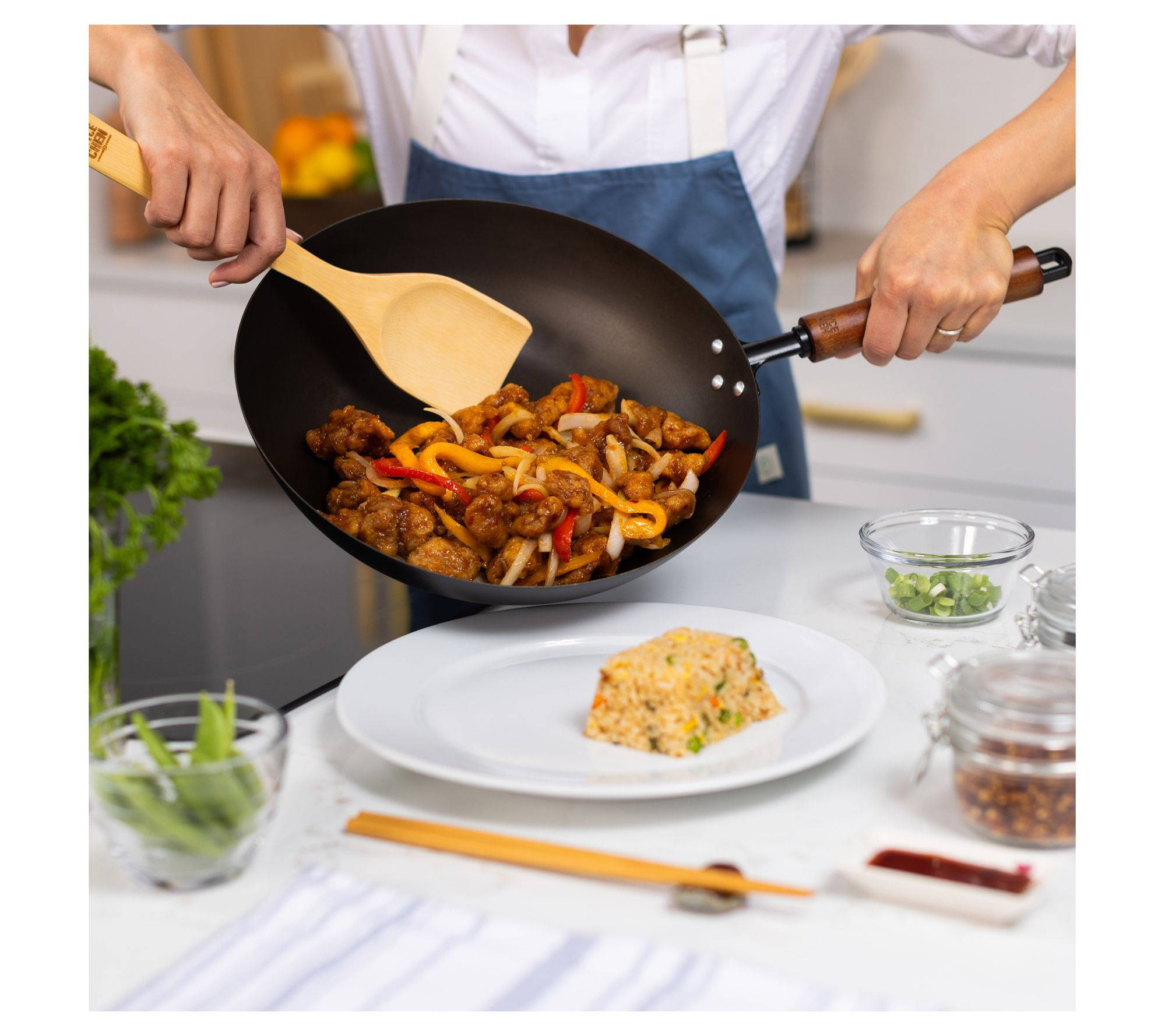 From sizzling weeknight stir-fries to weekend family feasts, this pre-seasoned pan brings flavor to every occasion. Its generous size and carbon steel surface handle everything from searing steak to mixing up crisp veggies, while the comfortable beech wood handle ensures easy tossing and serving. Store it with ease thanks to a clever removable handle. From Joyce Chen.