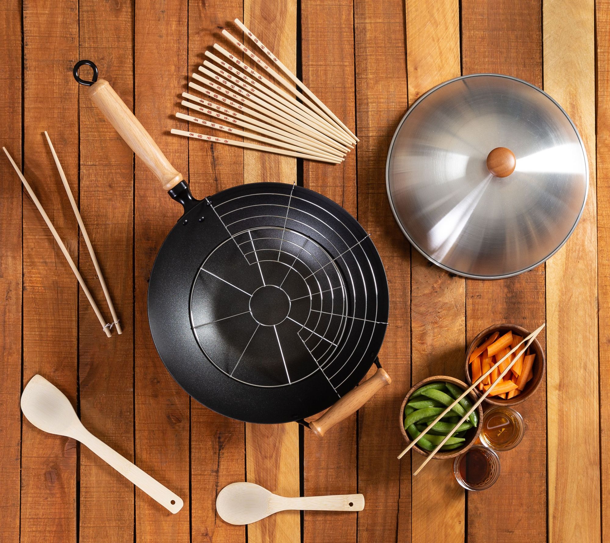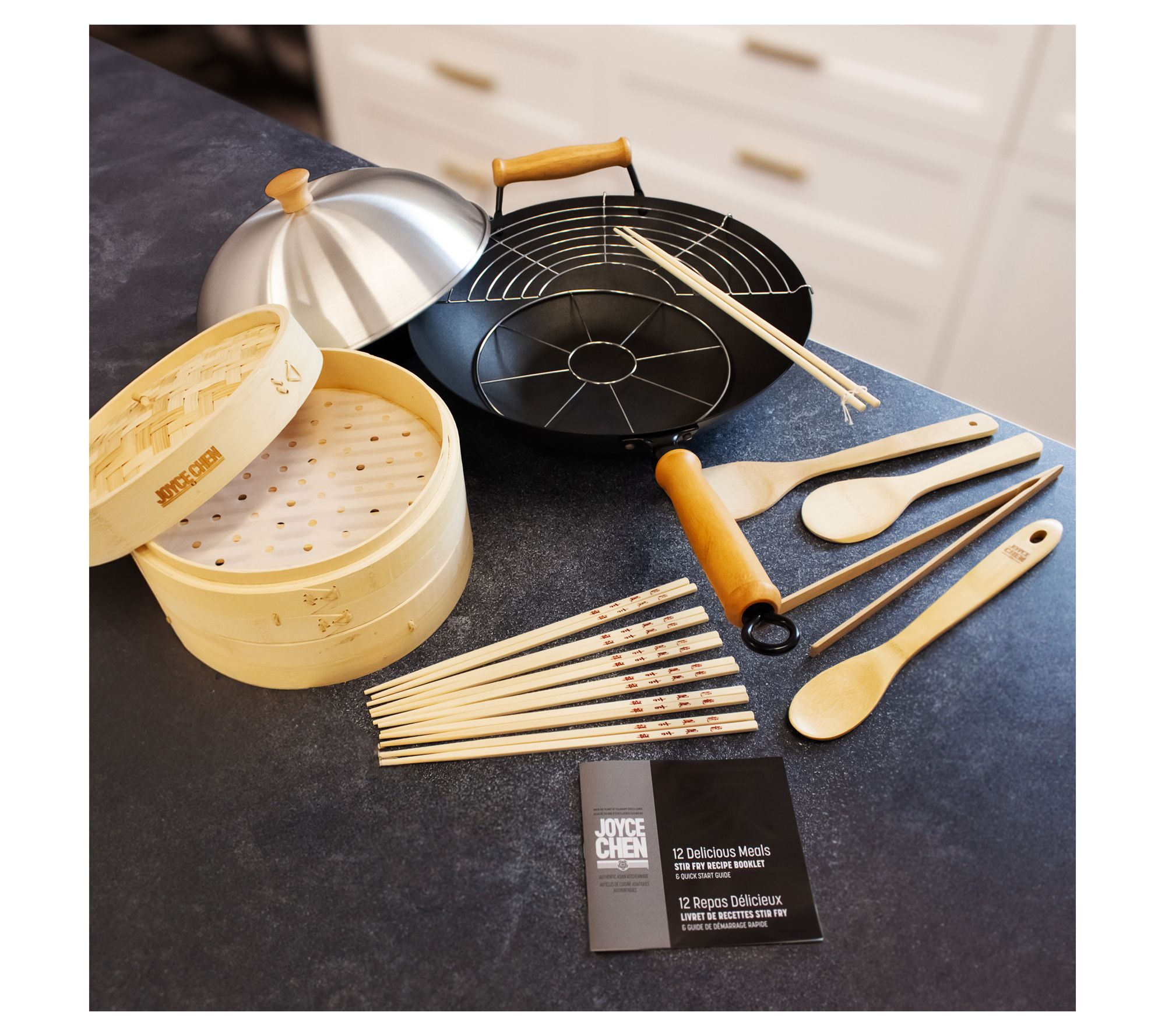 Hosting stir-fry night or prepping a family dinner just got easier with this comprehensive wok set. From sizzling up crisp veggies to steaming dumplings, everything you need is on hand, including tools, steamer, and even a recipe booklet to spark fresh ideas. Get ready to bring authentic dishes to life and make mealtimes memorable. From Joyce Chen.