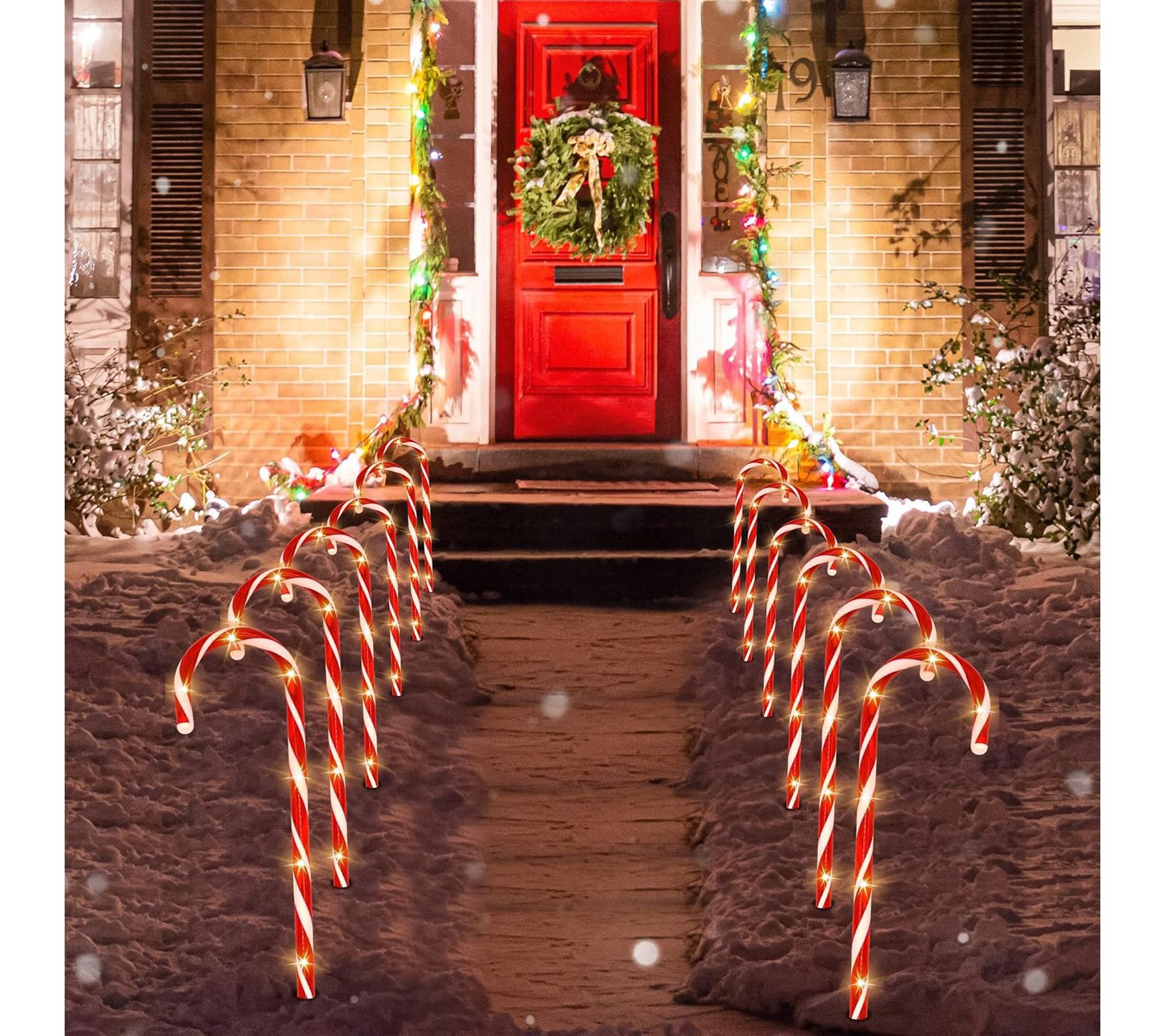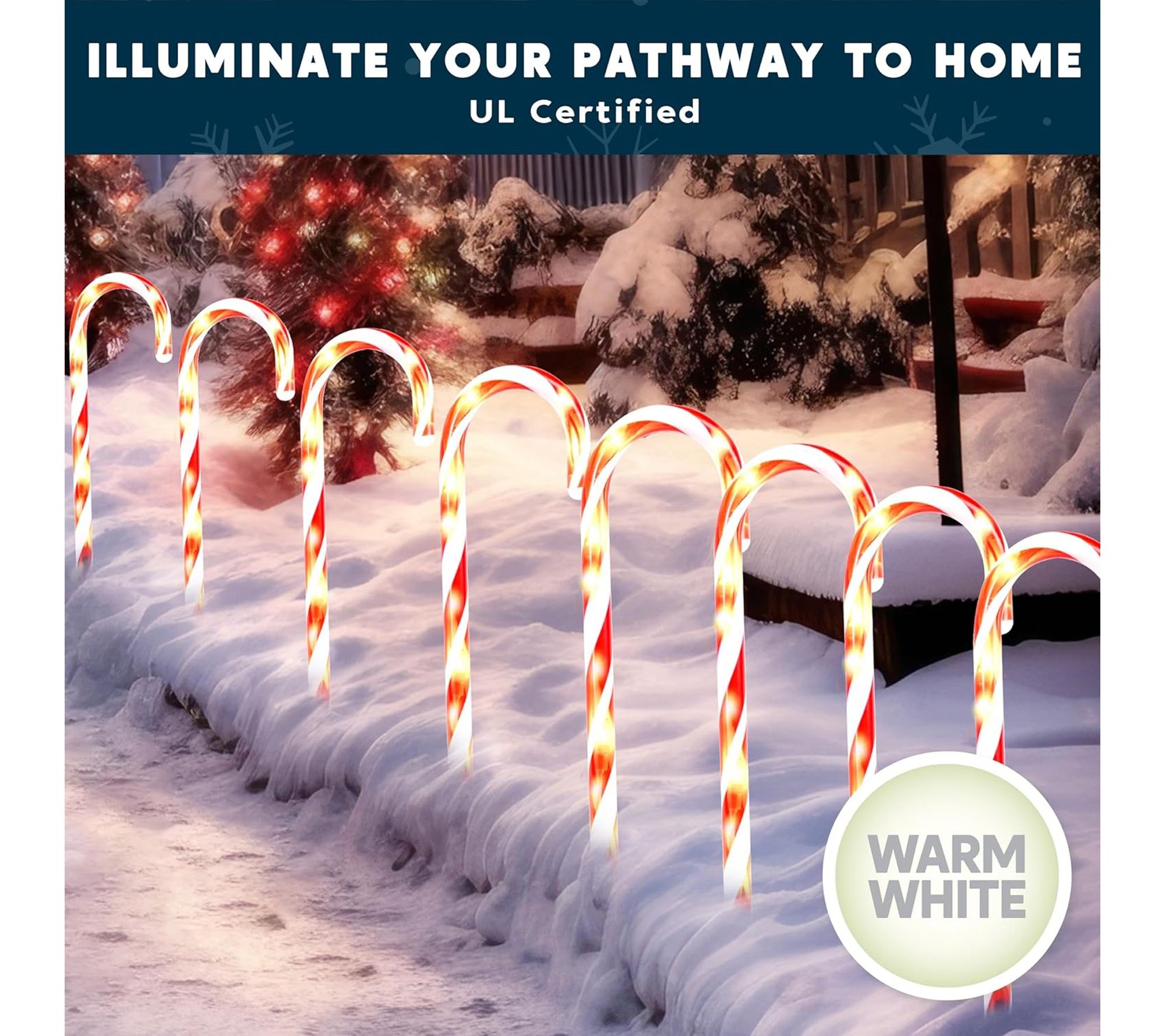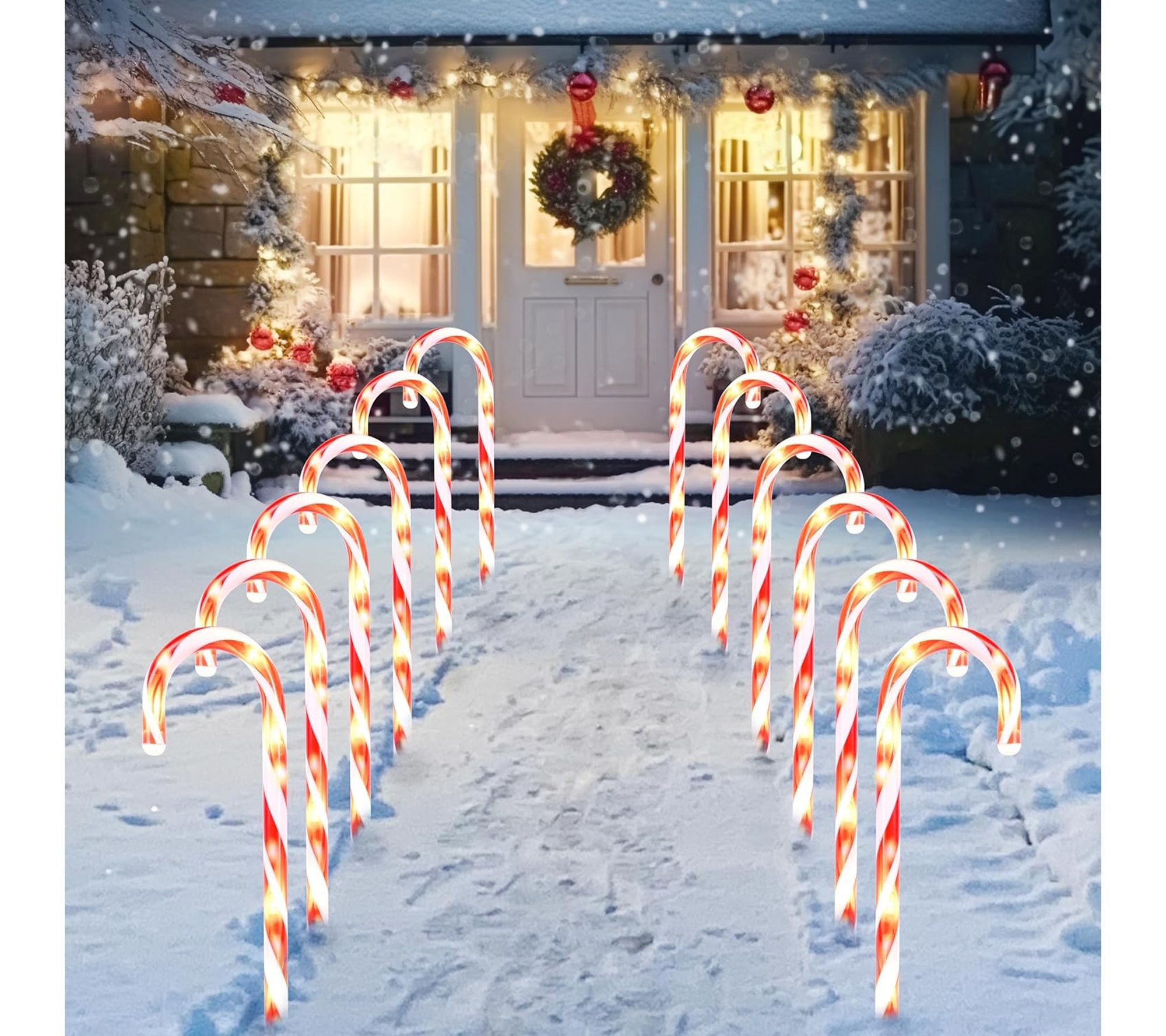 Joyfy 12pc Christmas Candy Cane Pathway MarkersLights 12"