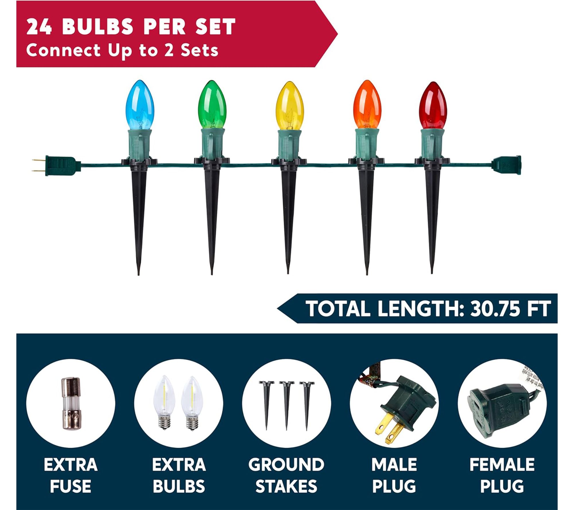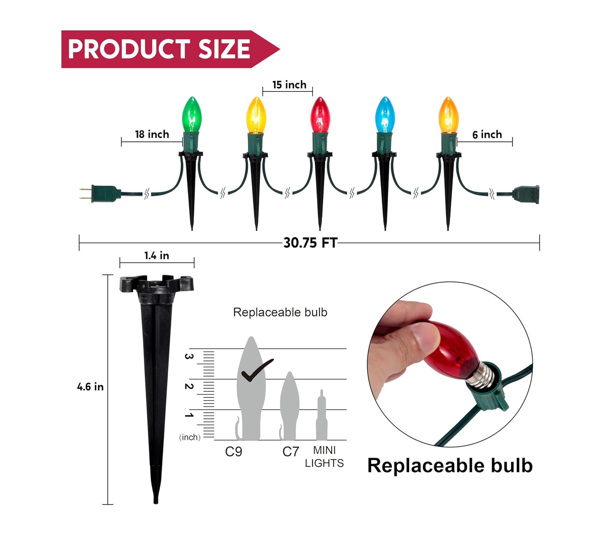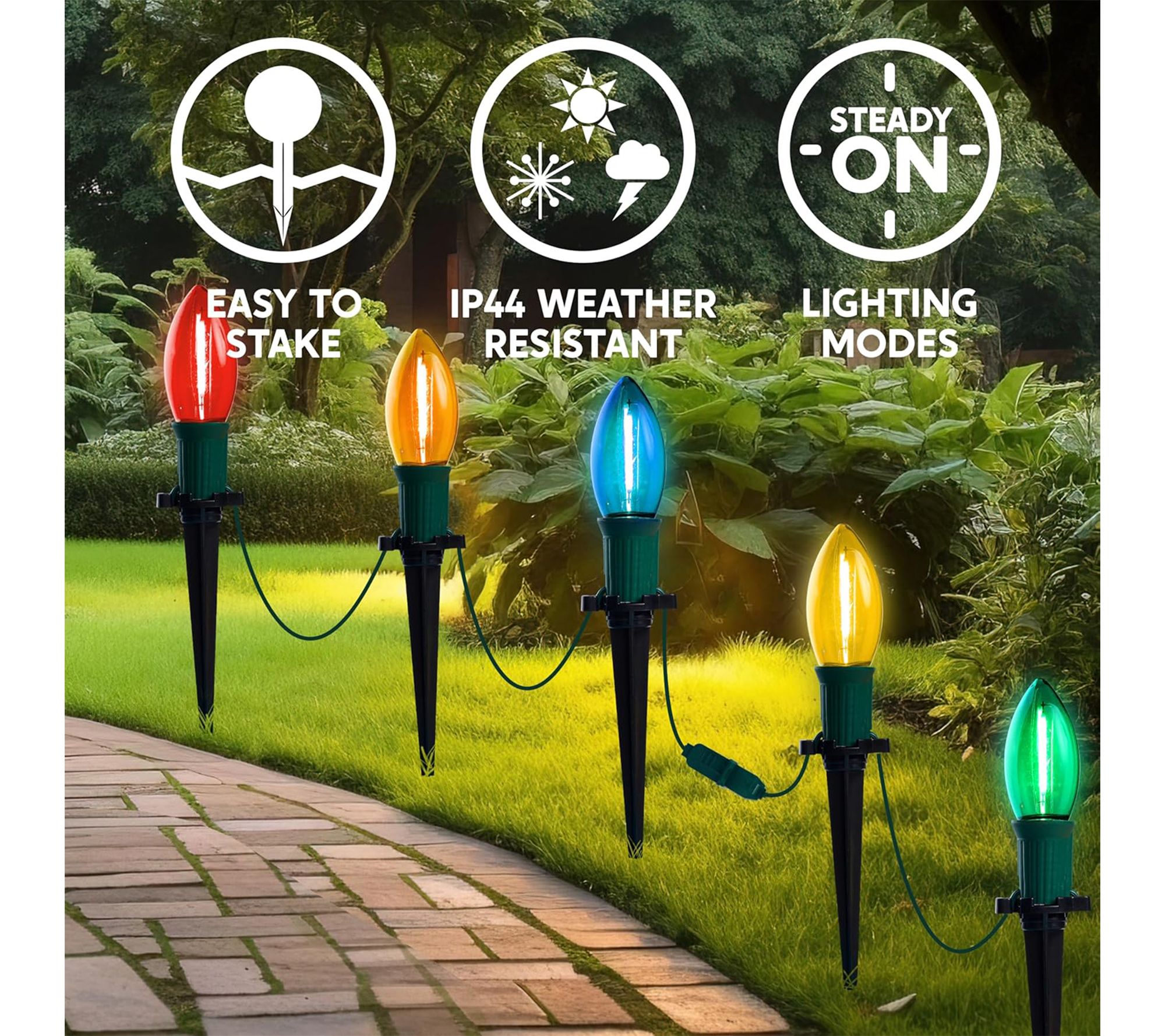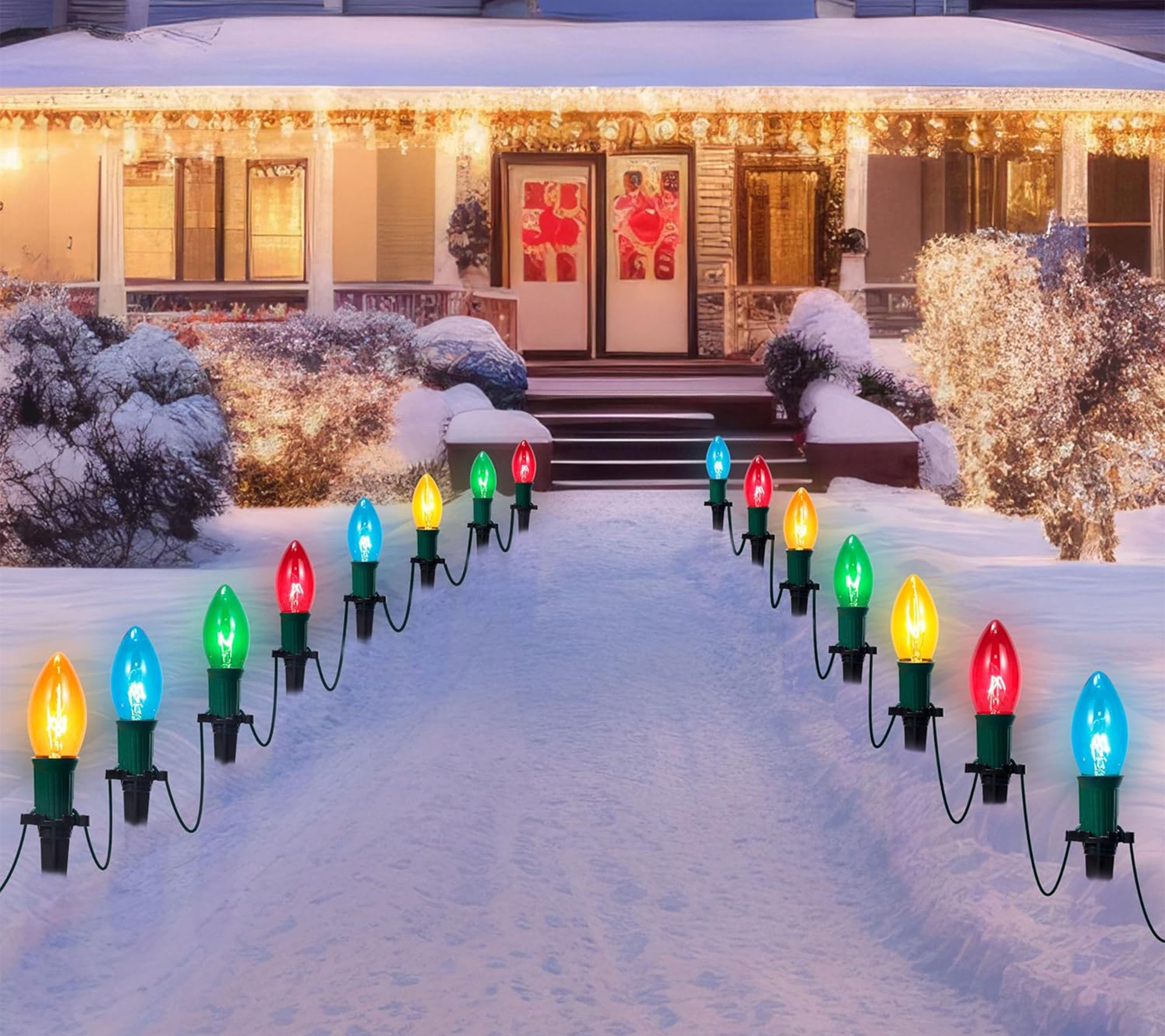 Bring festive charm to your walkway or garden with these C9 Christmas pathway lights, casting a warm white glow that welcomes guests and delights neighbors. Quick to set up and easy to connect, this strand adds instant holiday ambiance whether you're highlighting a path or framing your outdoor display. From Joyfy.