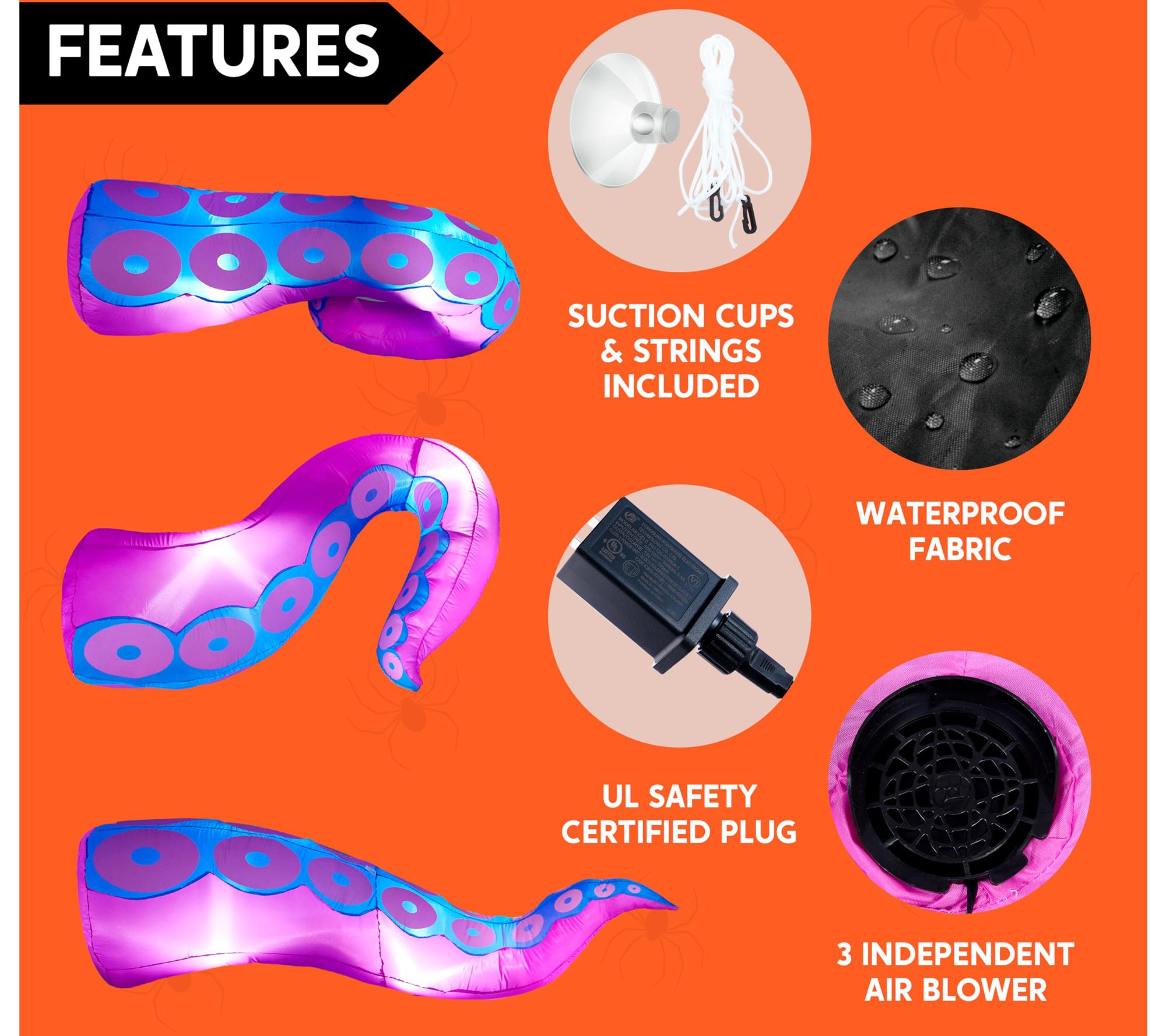 Joyfy 3-Piece Halloween Inflatable Giant Octopus Tentacle