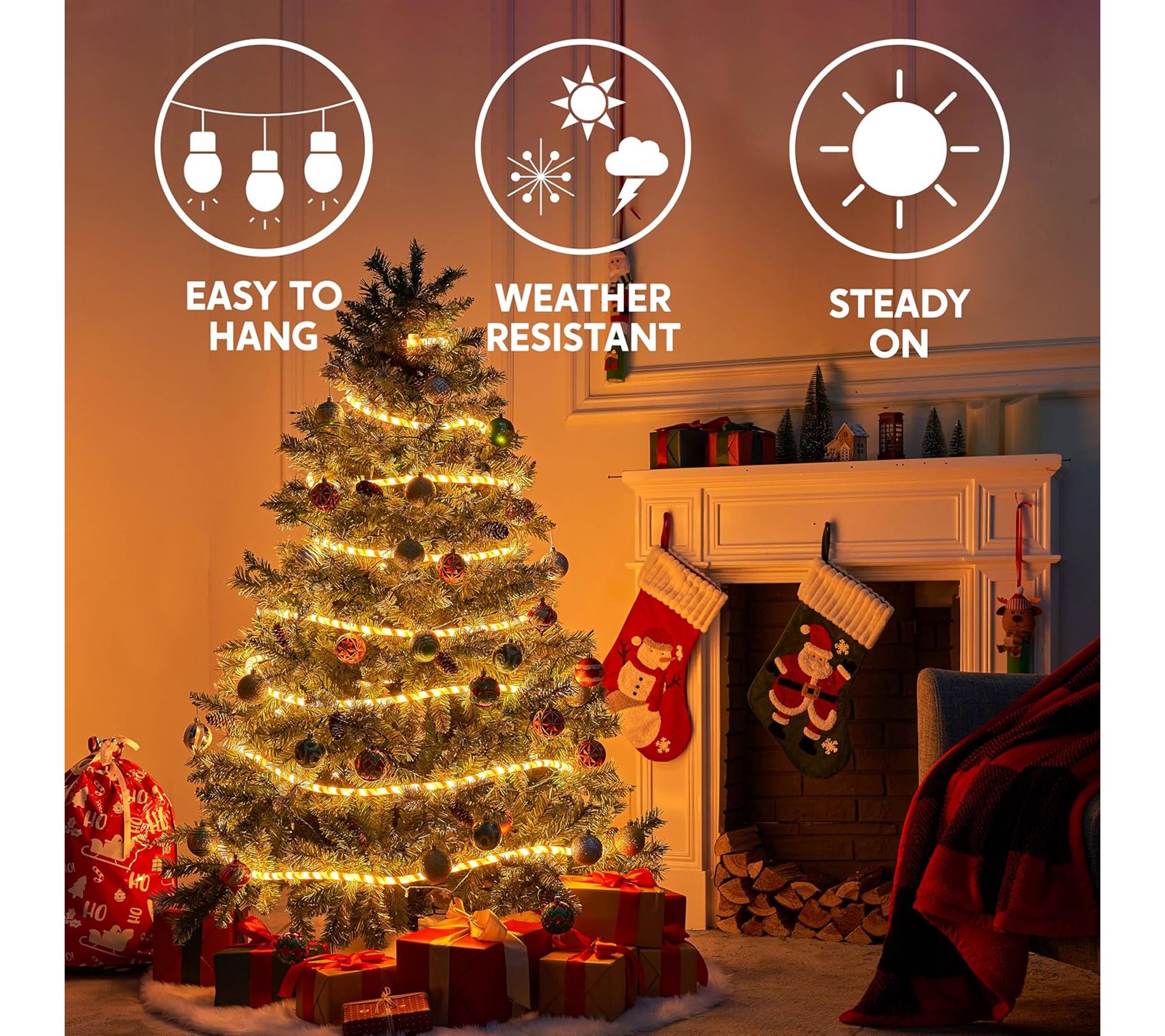 • Includes one 40' Candy Cane rope light with a seamless red and white stripe pattern