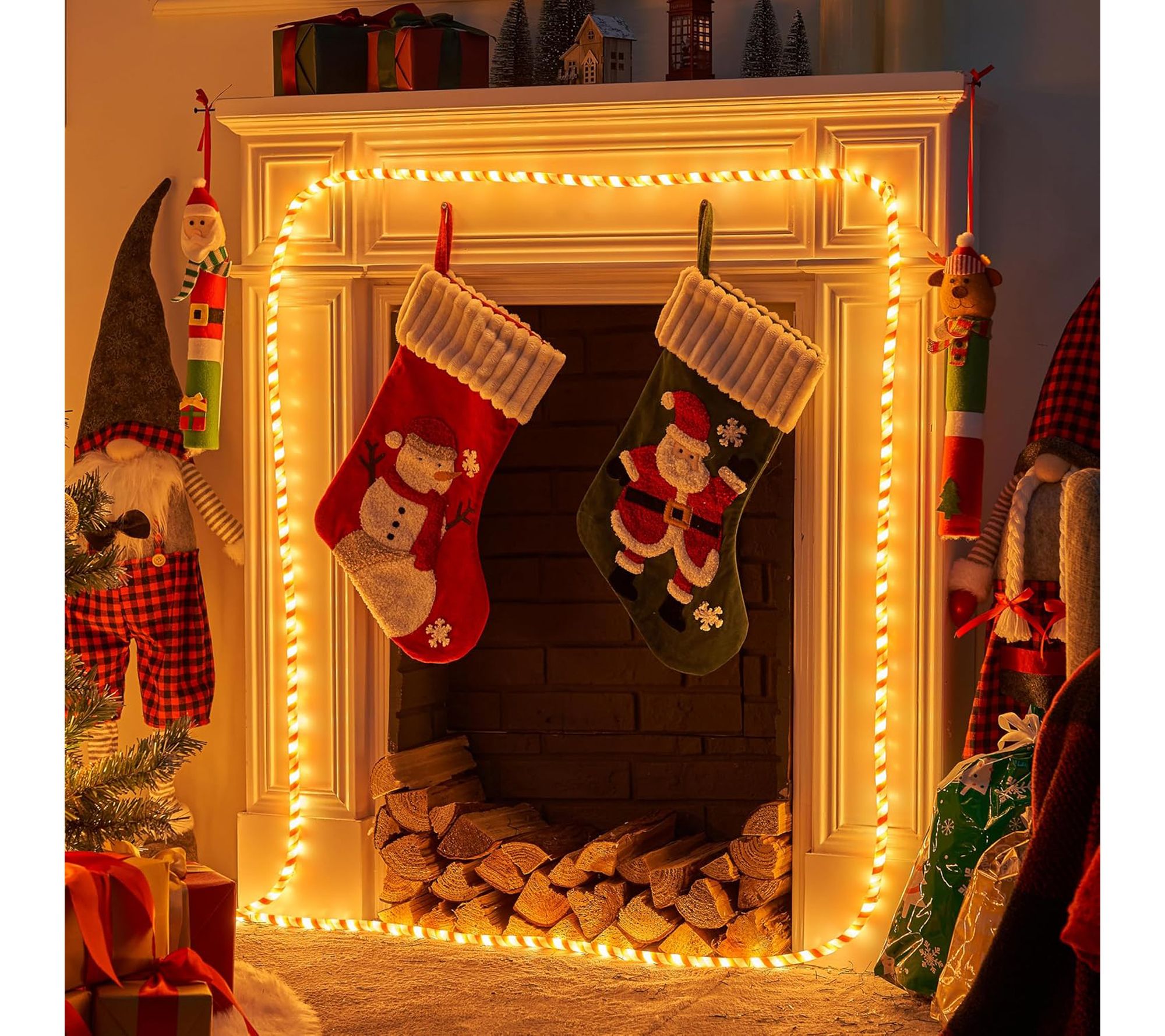 Joyfy 40ft LED Christmas Candy Cane Rope Lights