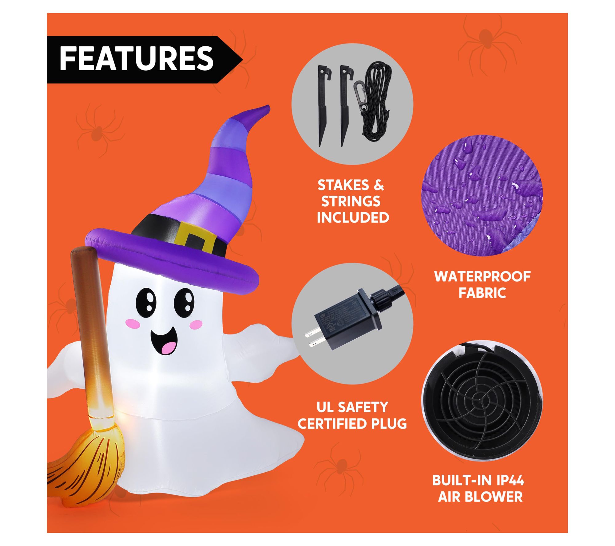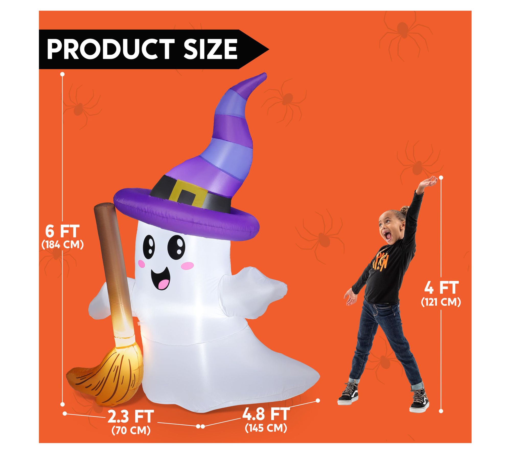 • Features a cheerful ghost design with broom