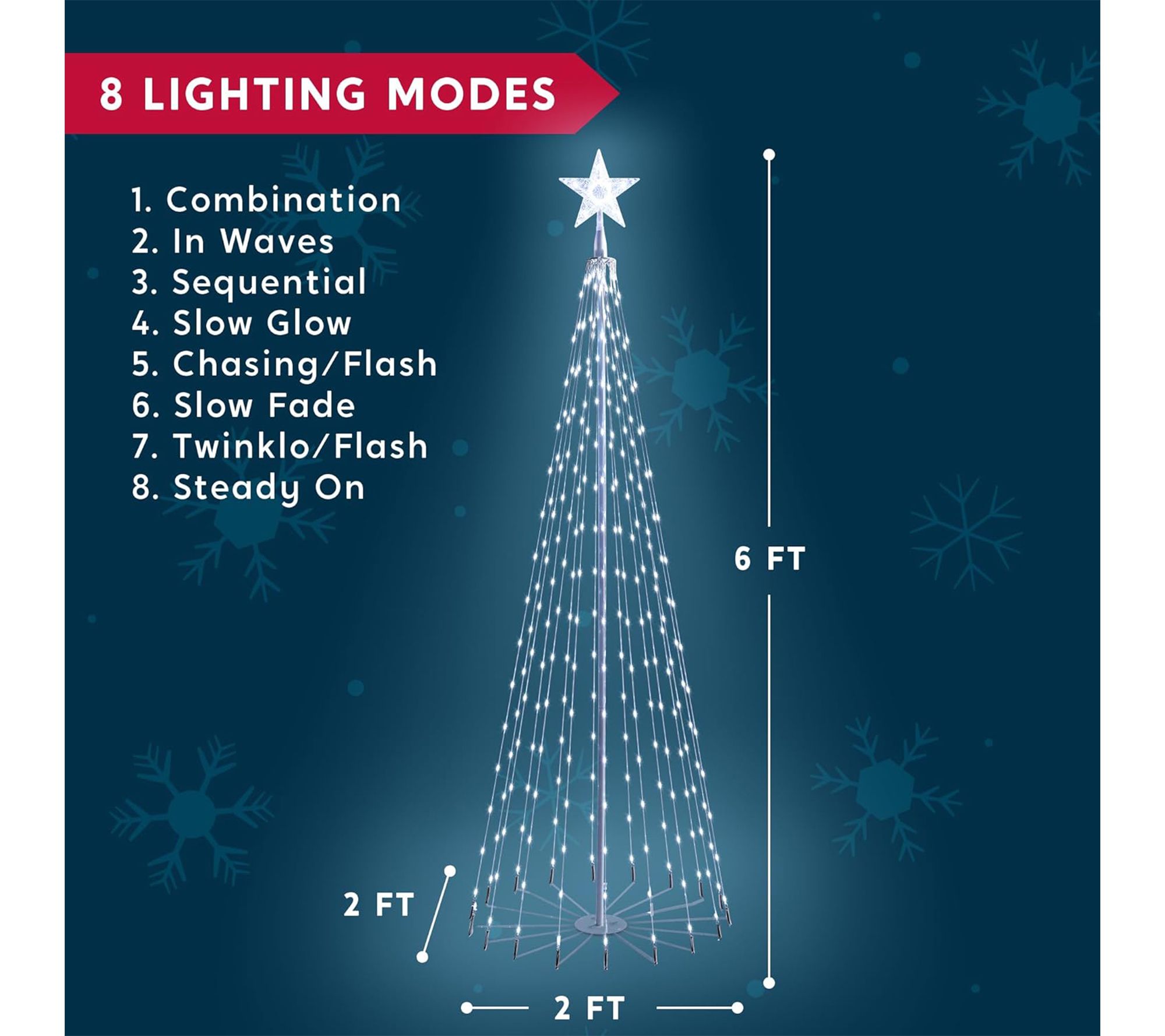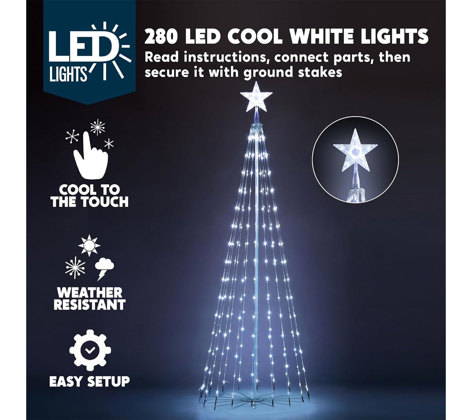 Celebrate the season with dazzling style thanks to this animated Christmas cone tree yard light, shining with 280 bright white LEDs and sparkling lighting modes. Transform your lawn or entryway into a festive wonderland, as sturdy metal stakes help keep everything in place for both indoor and outdoor displays. From Joyfy.