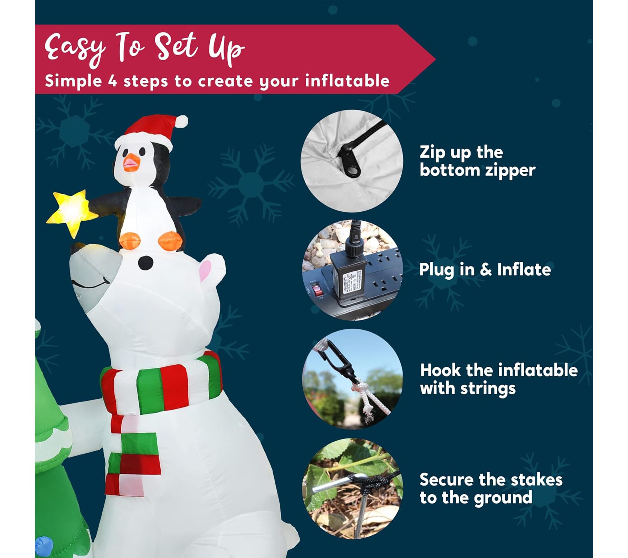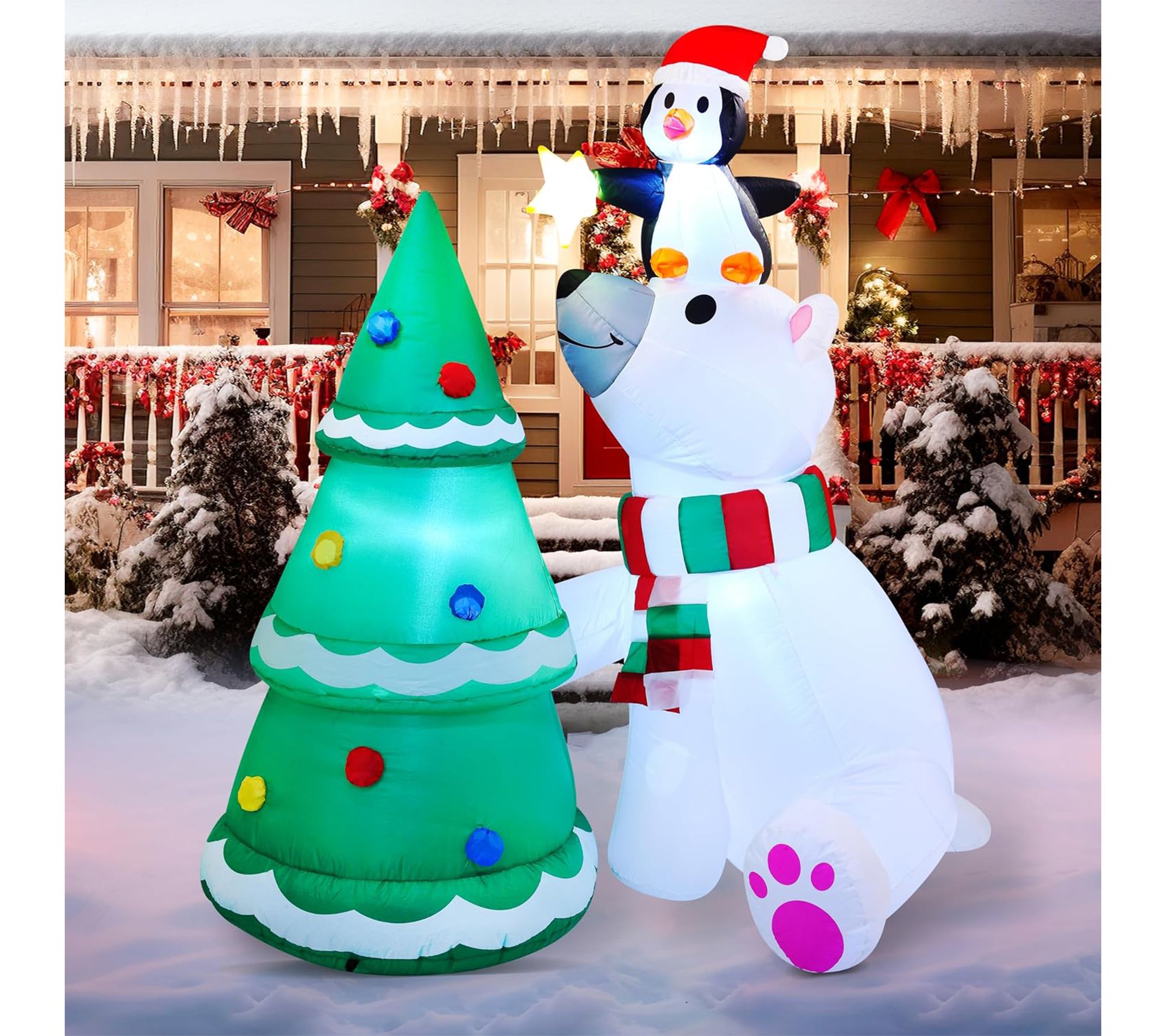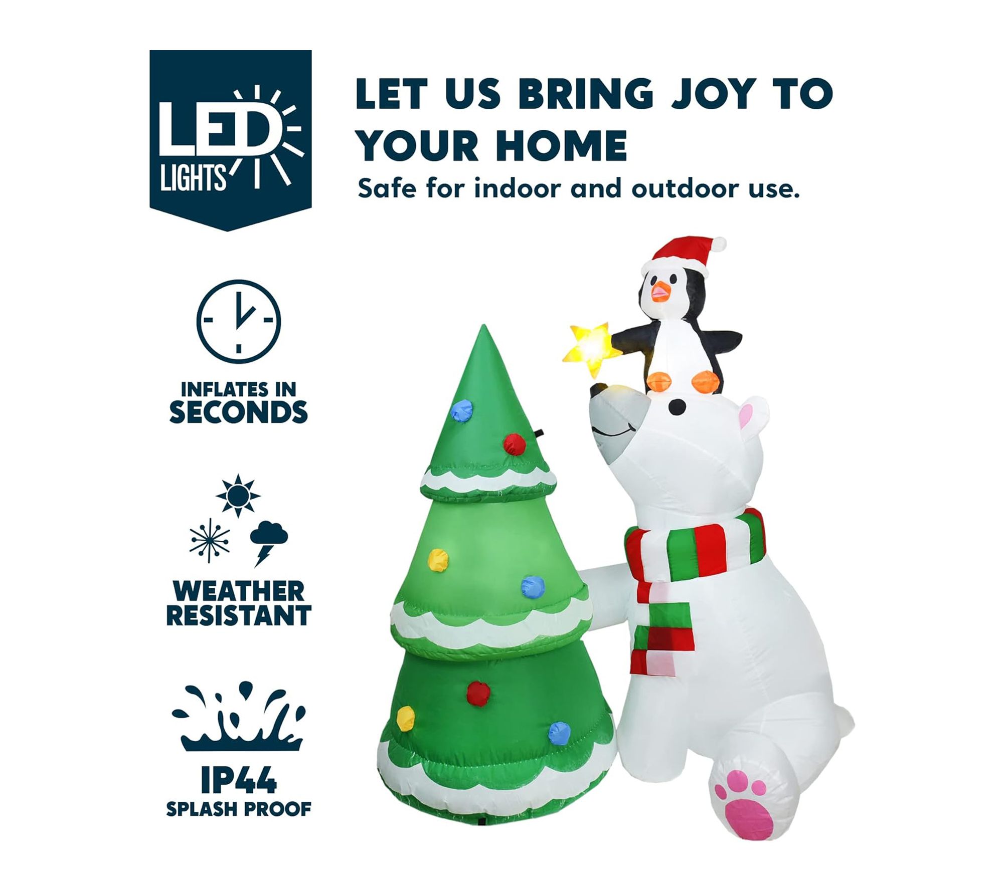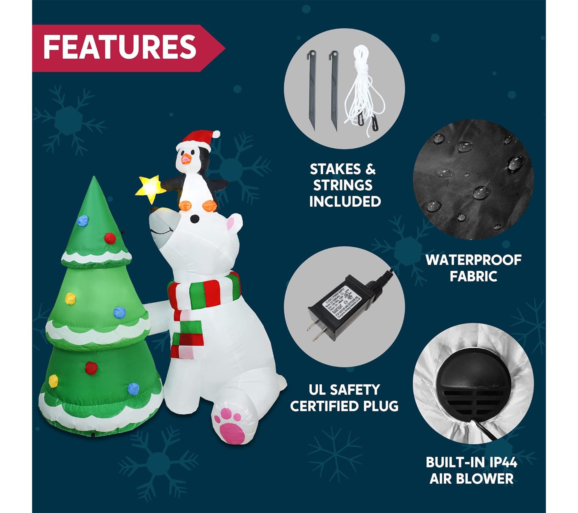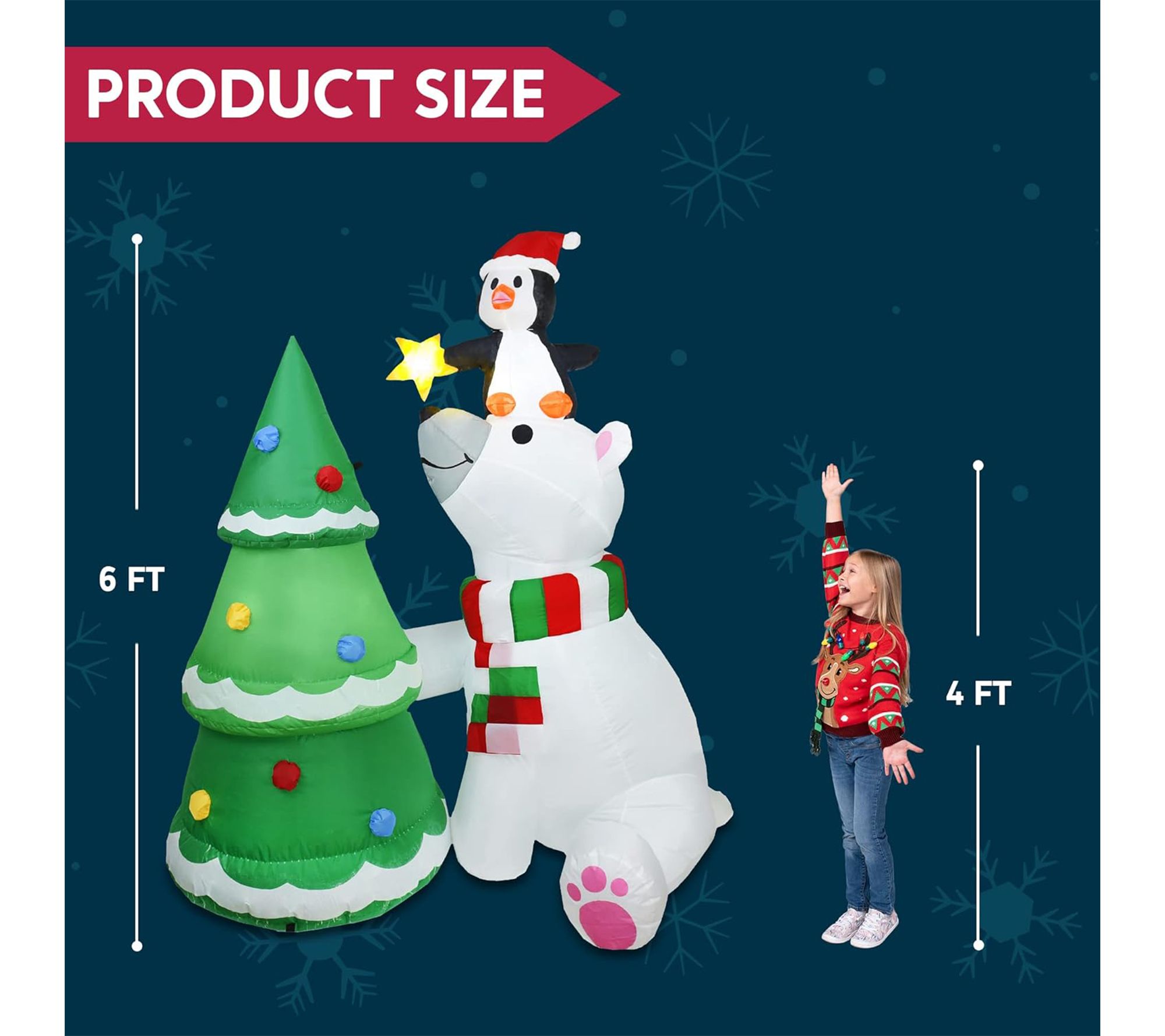 Joyfy 6ft Christmas Polar Bear Penguin & Xmas Tree Inflatable
