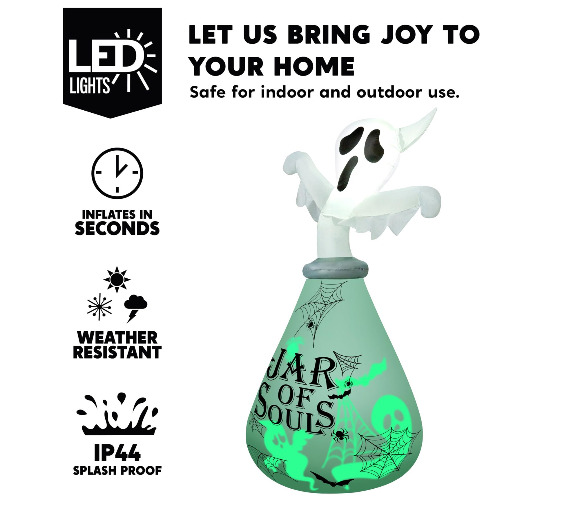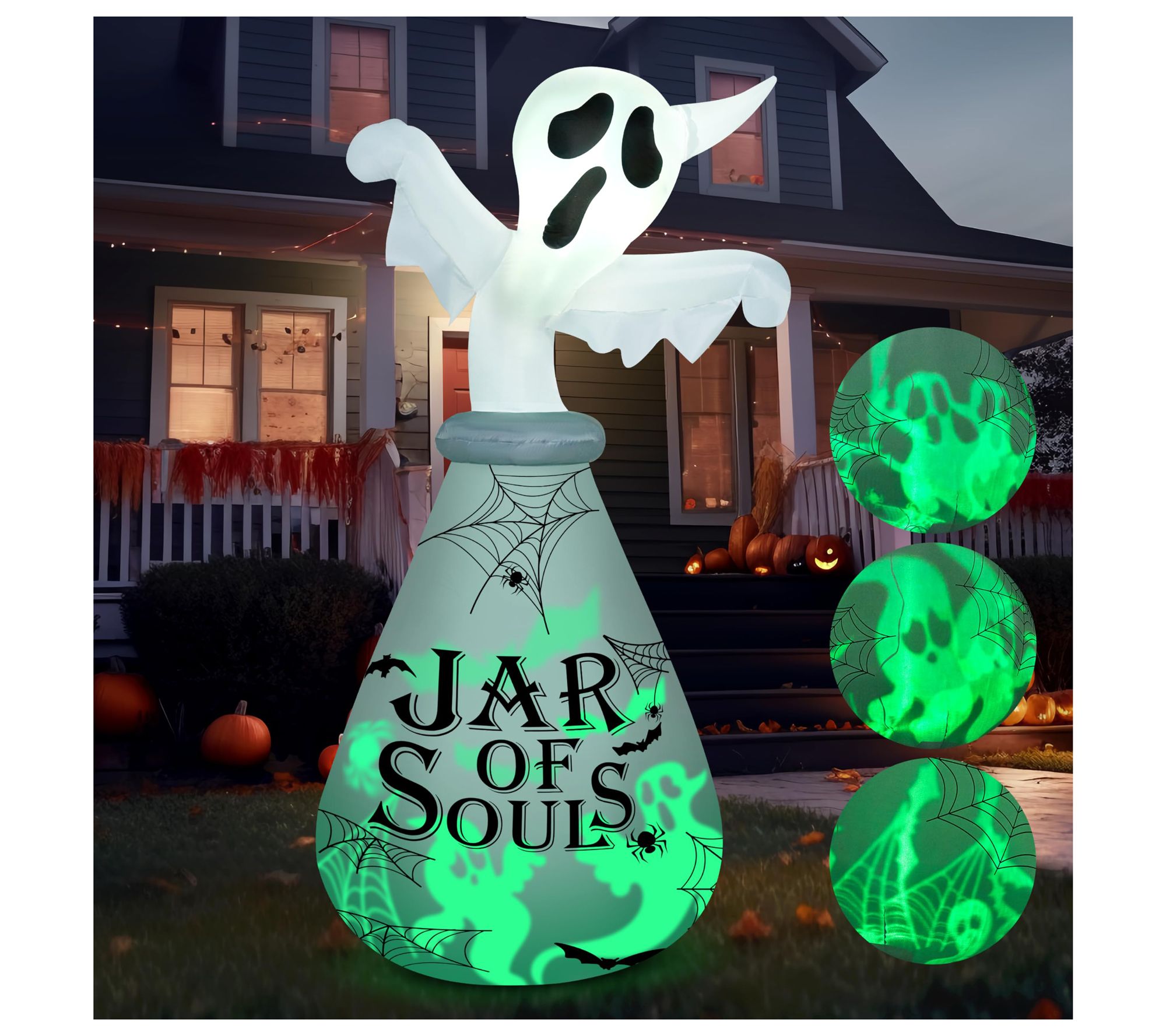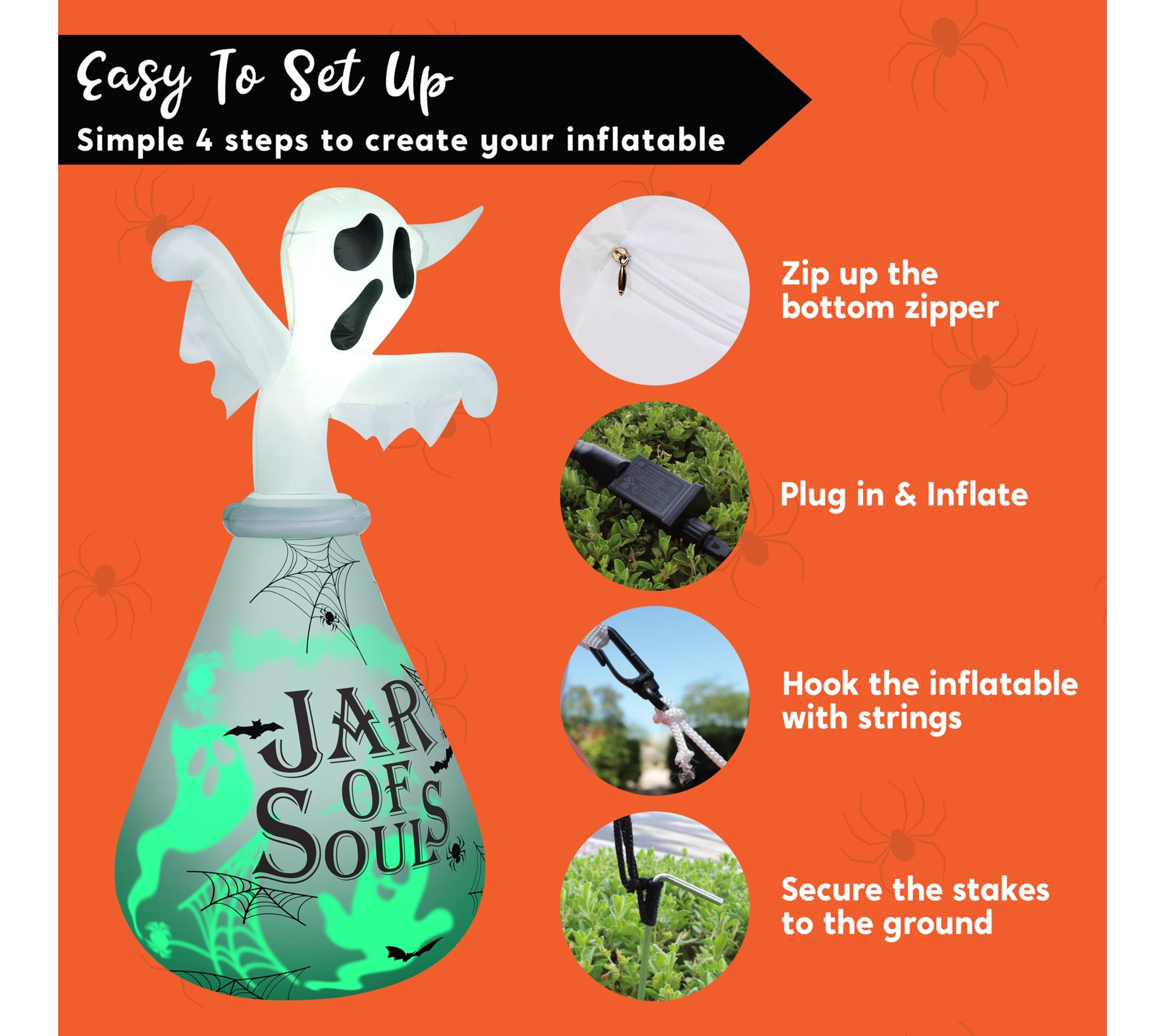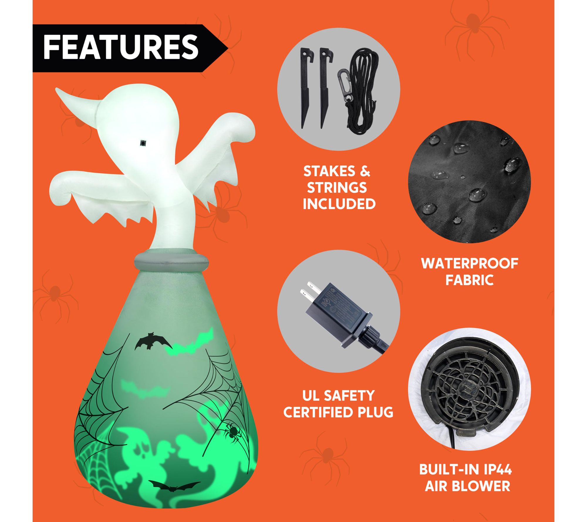 Transform your yard into a Halloween spectacle with this 6-foot-tall inflatable ghost, complete with swirling green LED lights that cast a captivating, eerie glow. Gather friends and family for trick-or-treating or a backyard bash and watch this glowing ghost become the talk of the neighborhood. From Joyfy.