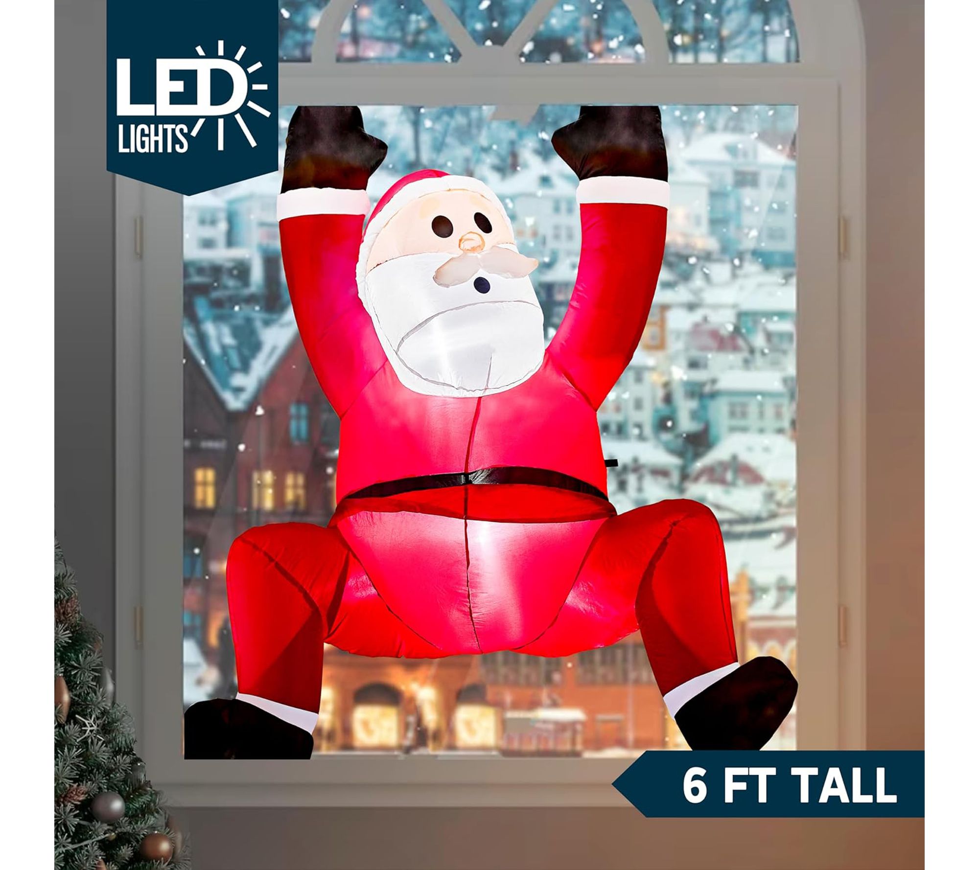 • Lifelike climbing Santa design with built-in LED lights