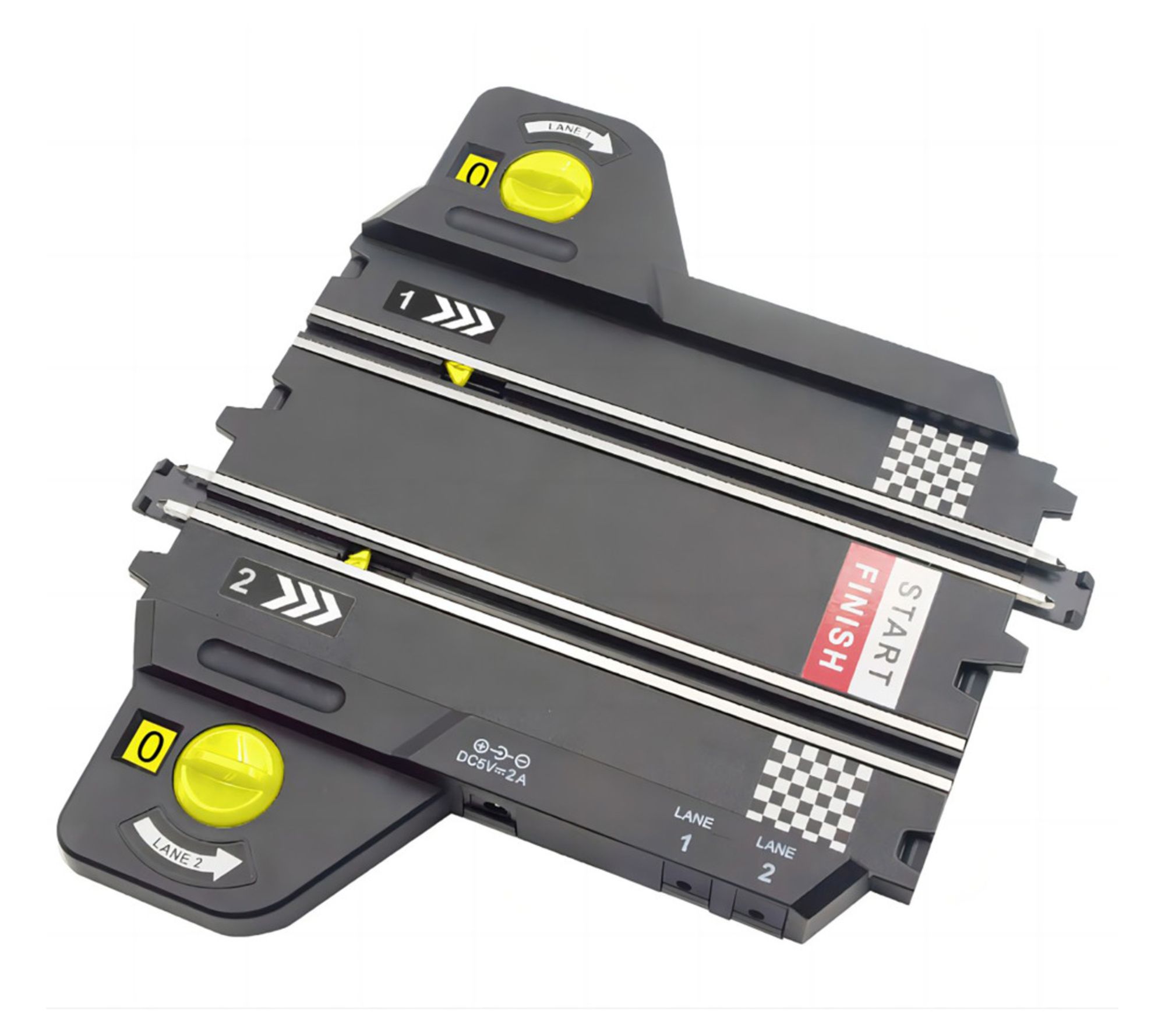 Race your friends with this complete slot car racing set featuring two cars with controllable speeds. From Joysway.