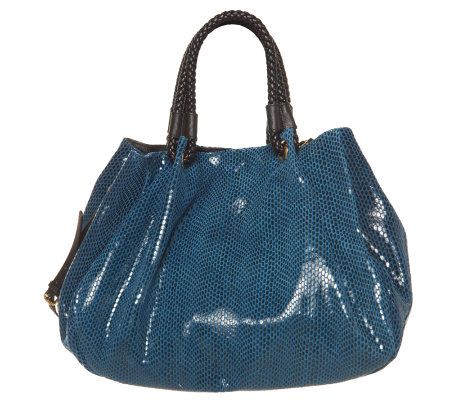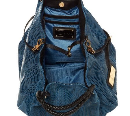 It won't bite, but this snakeskin-embossed leather hobo will add a sharp touch to your look. The chic design is topped off by braided rope handles and a removable shoulder strap. From JPK Paris75.