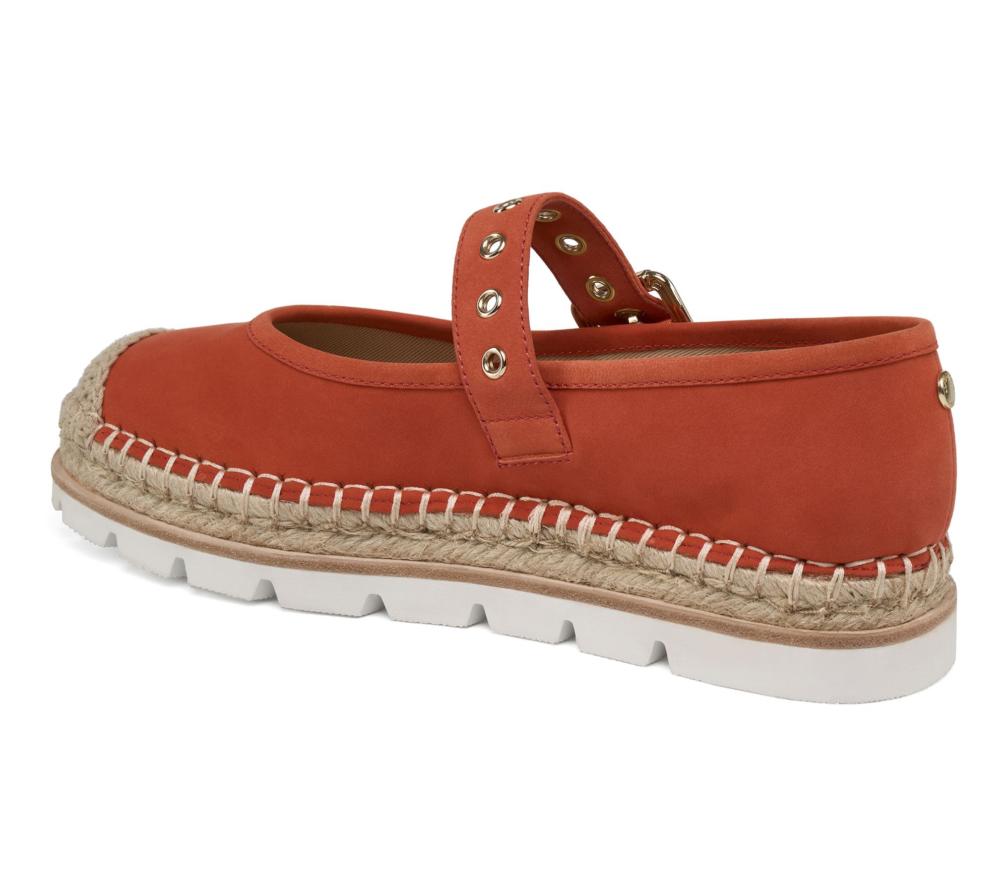Espadrille Mary Jane design with adjustable strap and round toe