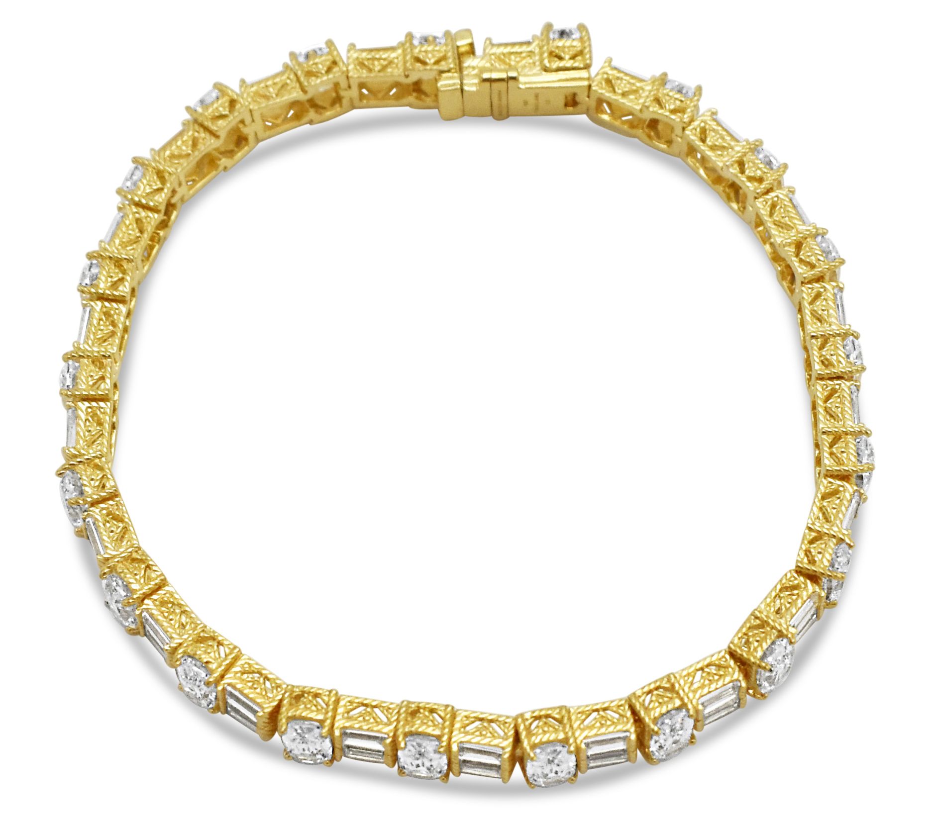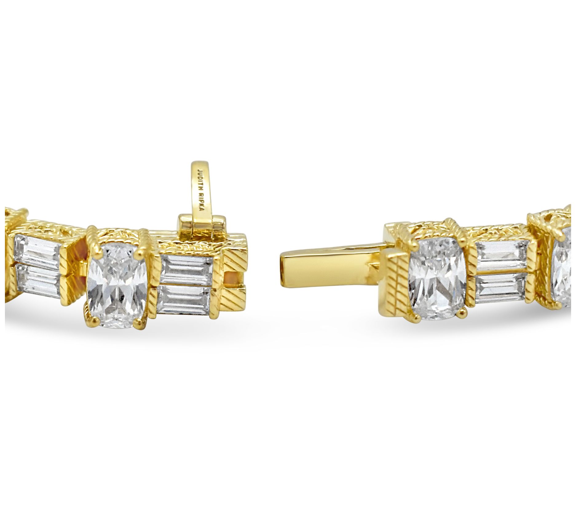 Prong-set, elongated cushion-cut Diamonique simulated diamonds and baguette-cut Diamonique simulated diamonds in a tennis bracelet design