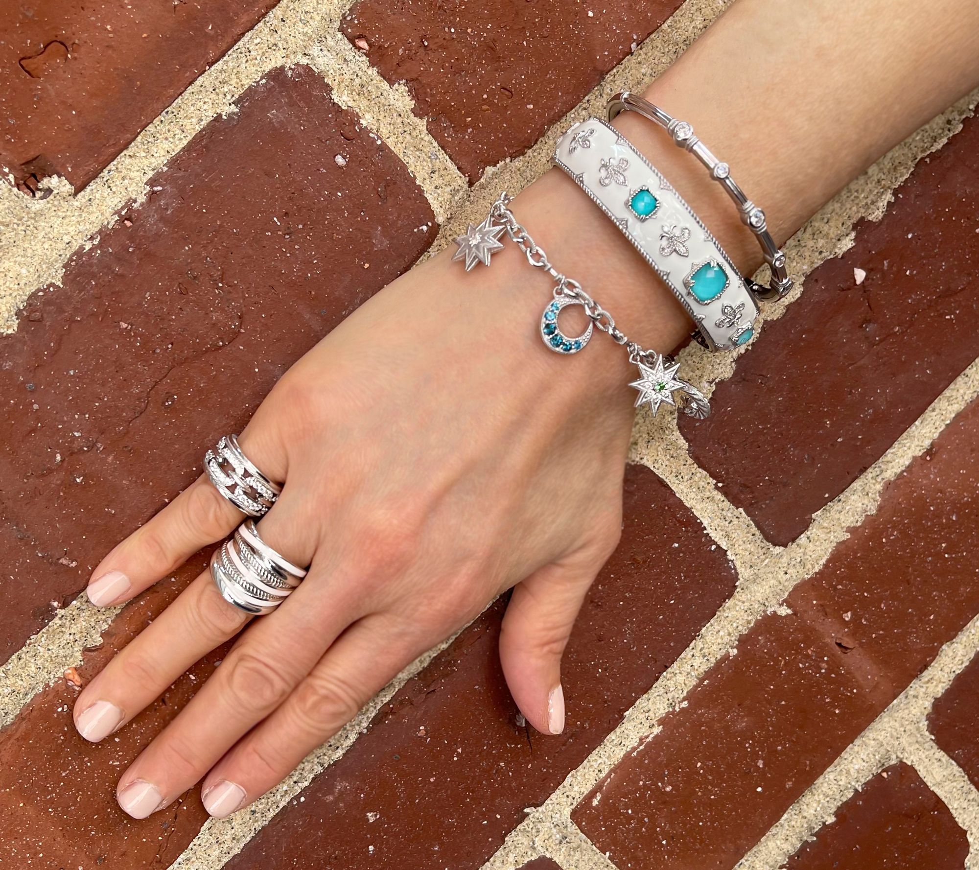 Know someone who goes above and beyond (like outer space beyond)? Give them the moon and the stars with this sparkly gemstone charm bracelet. From Judith Ripka.