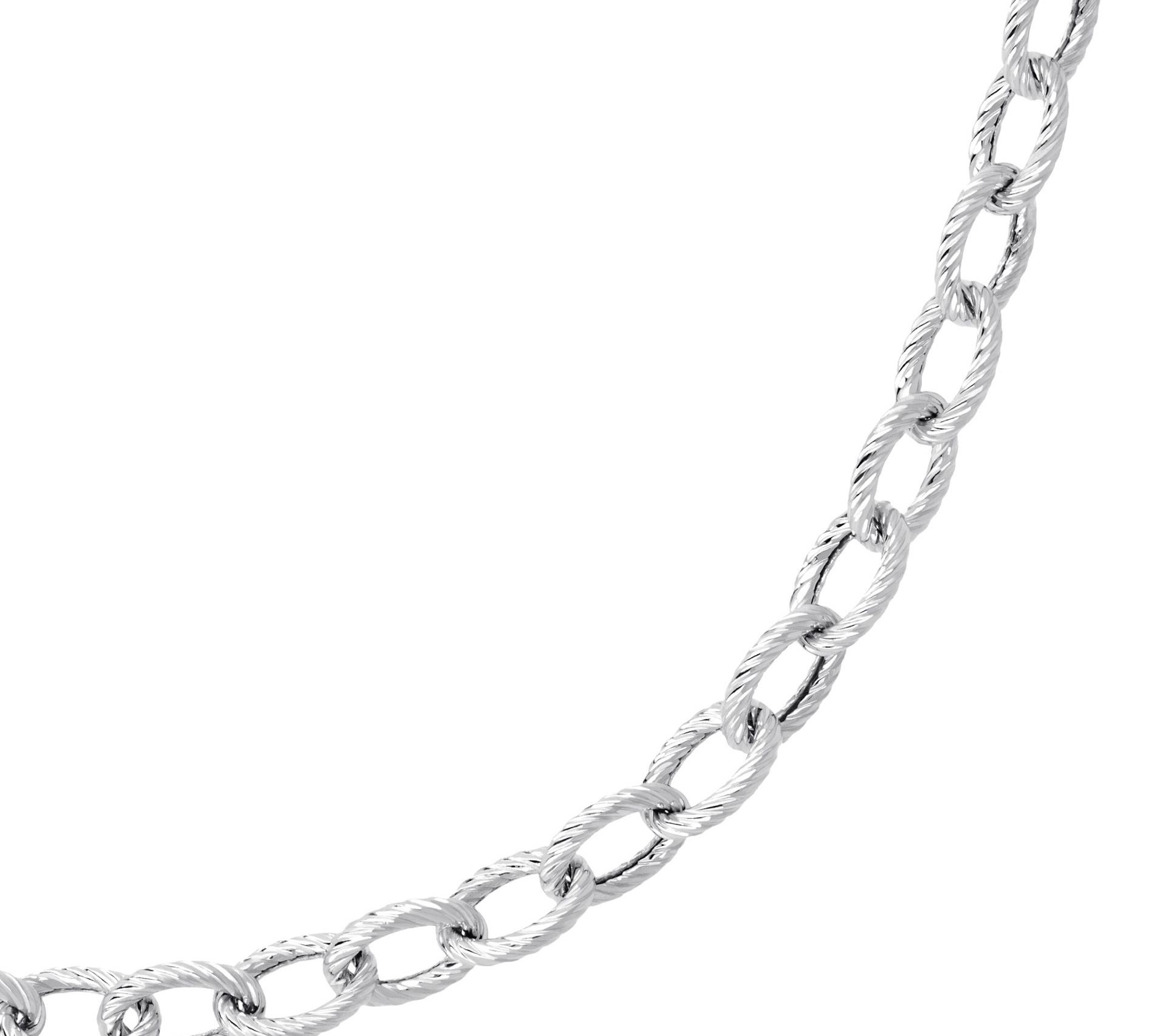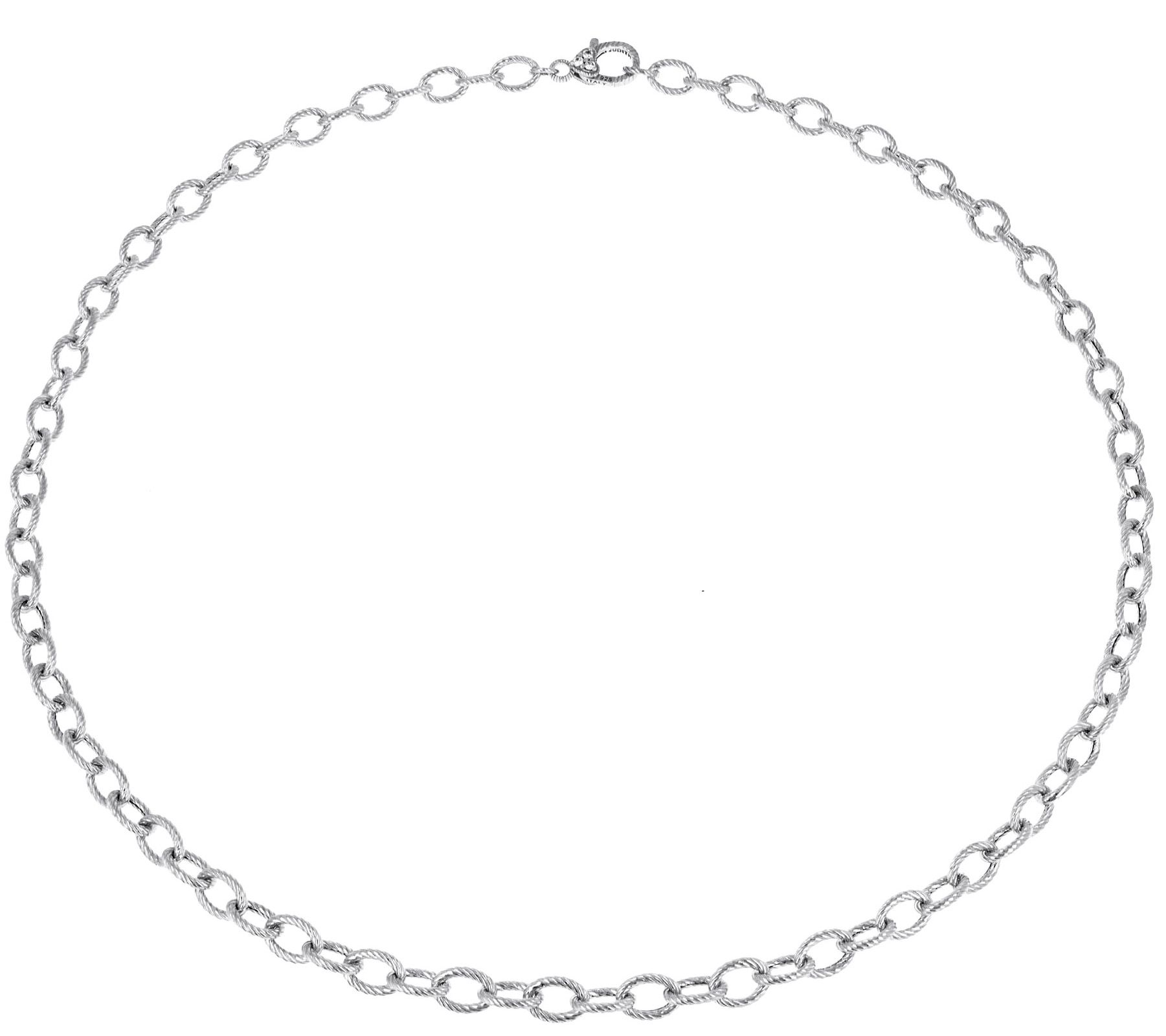Love the way you look in this sterling silver necklace from Judith Ripka. The simple, yet sophisticated style sparkles with textured oval links throughout. From Judith Ripka.