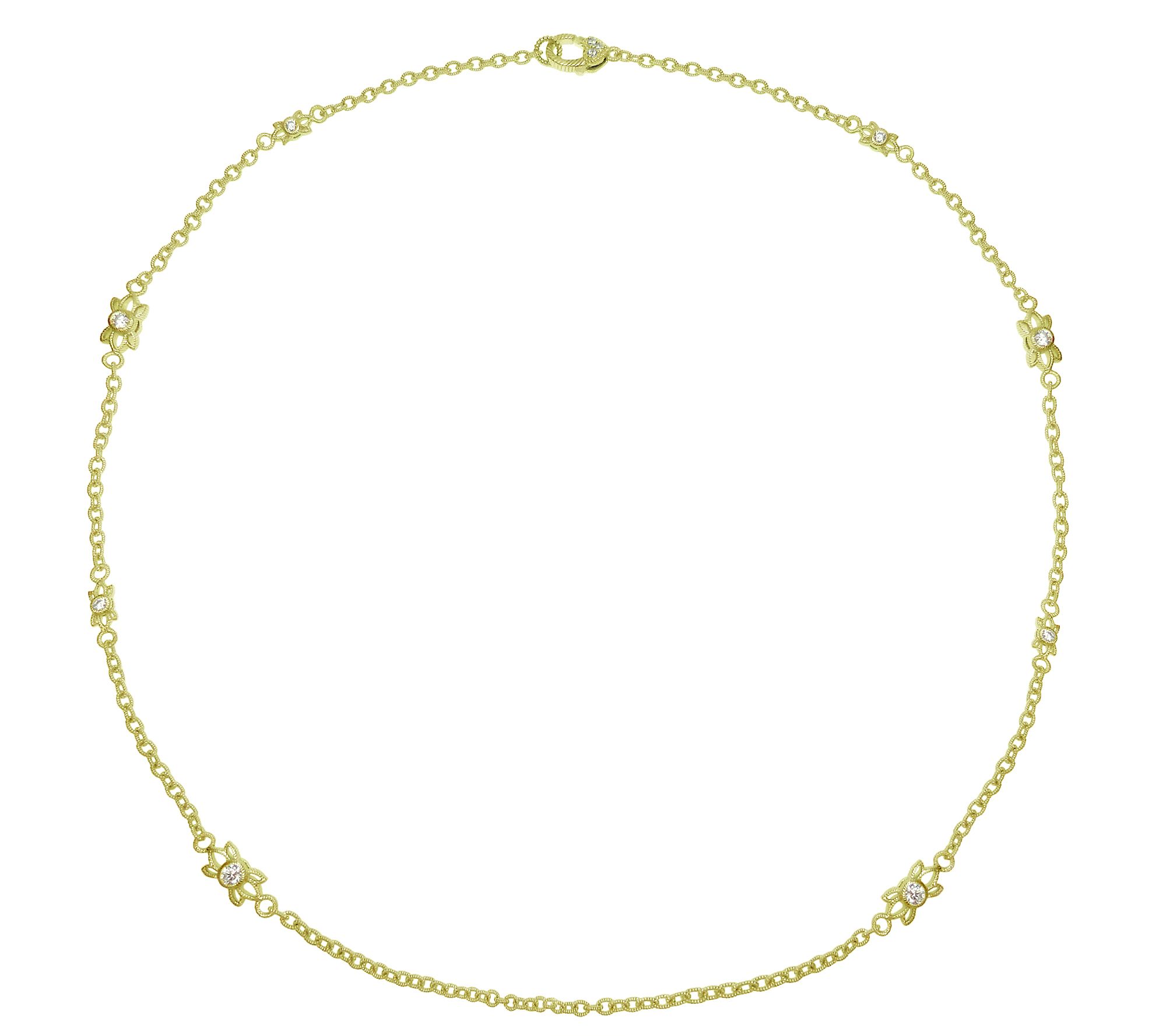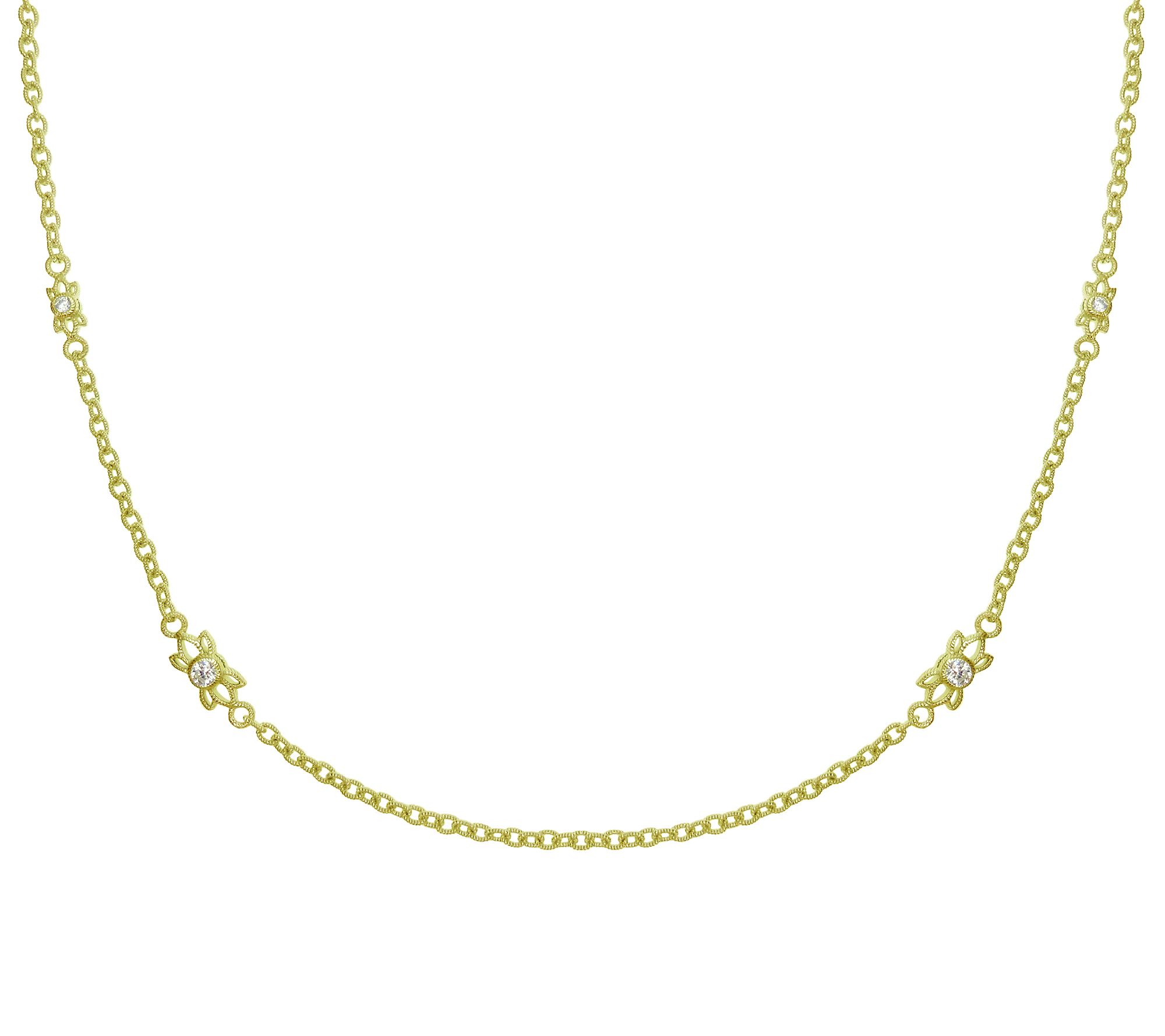 The chain event. Turn any top into an all-occasion outfit with Judith Ripka's 14K yellow gold-clad sterling silver necklace. Diamonique(R) simulated diamond stations with berge texture throughout make these luxurious links a high point in haute accessorizing. From Judith Ripka.