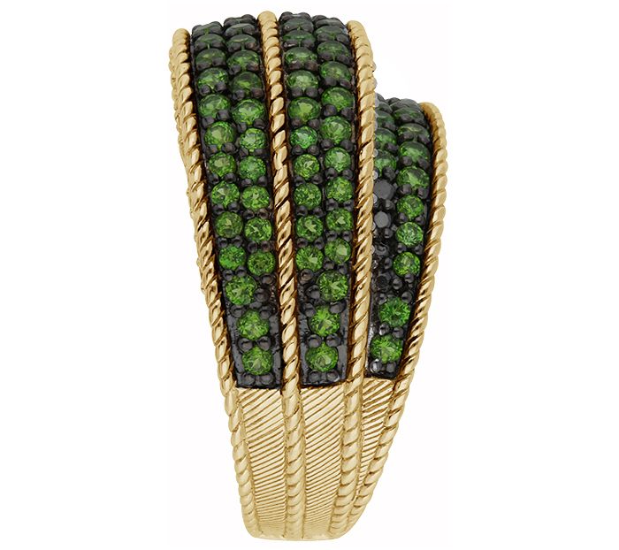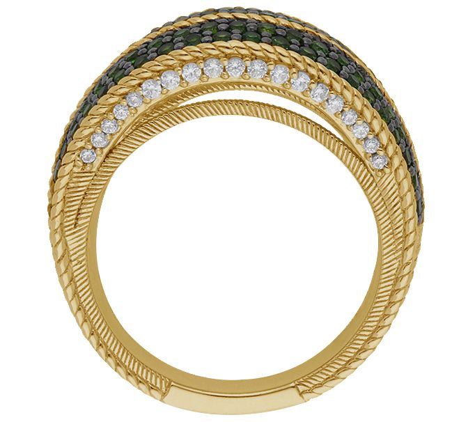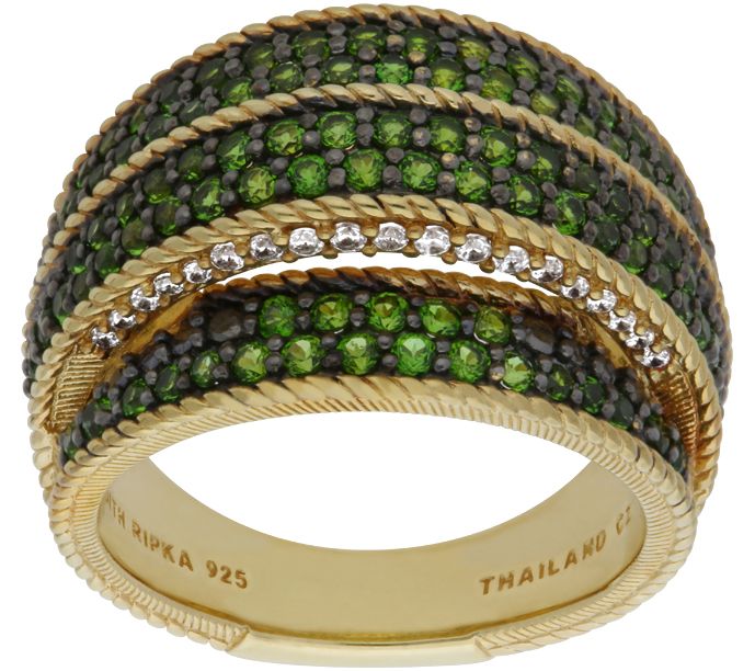Treat yourself to a triple row of chrome diopside when you slip on this striking ring, complete with cubic zirconia Diamonique simulated diamonds on the side. From Judith Ripka.