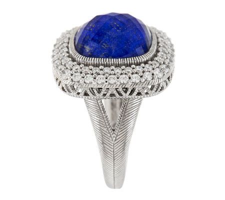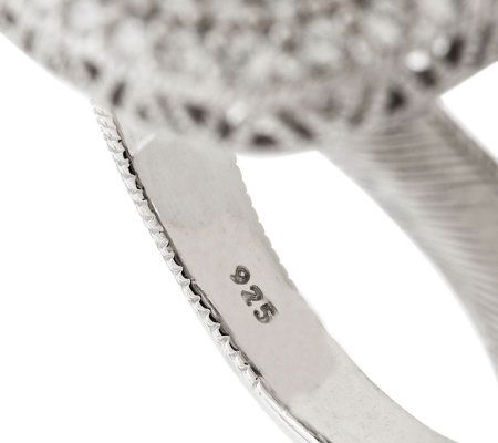 Go ahead and flaunt it. Truly exquisite, this sterling silver ring glimmers with a bezel-set, cushion-cut, faceted crystal quartz over a gemstone backing. Pave-set Diamonique(R) simulated diamonds and a berge texture border surround the doublet, while berge details on the split shank add a hint of dimension. From Judith Ripka.