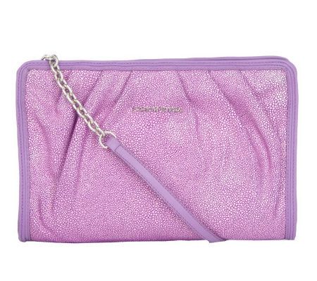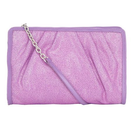 Judith Ripka "Lenox" Stingray EmbossedLeather Pleated Clutch