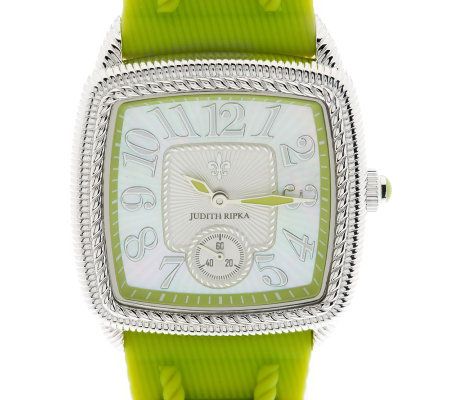 A magnificent mix of classy and casual, this watch adds a sensational look to any of your outfits. The white mother-of-pearl dial and highly polished rope detailing are classic elements, while the silicone strap gives it a modern and laid-back edge. From Judith Ripka.