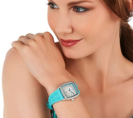 Time on your side. The perfect finishing touch for any ensemble, this watch features a silicone strap with a beautiful pearlized effect. Mixing classic and modern elements, it gives your look that little something extra. From Judith Ripka.