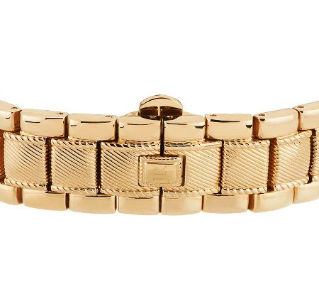 Polished stainless steel band; links are removable by a professional jeweler; stainless steel deployment clasp; berge and rope motifs
