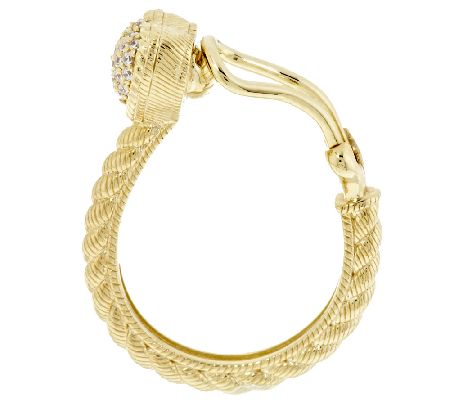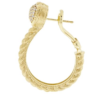 Hoop earrings that capture hearts. Hearts gleaming with pave-set cubic zirconia Diamonique simulated diamonds rest at the top of these sterling silver and 14K gold-clad, rope-textured hoops. Find your perfect match in these stunning loops of love with pierced or clip-on options. From Judith Ripka.