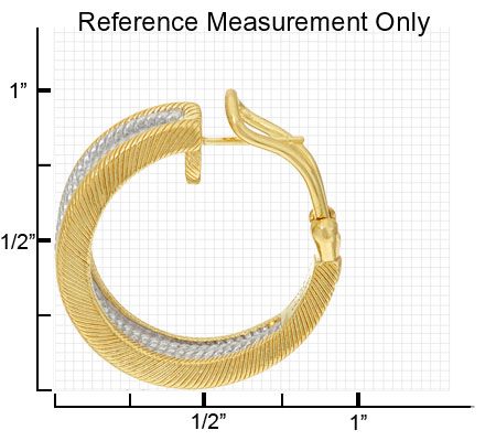 • Hoop with sterling silver rope-textured rows and 14K yellow gold-clad sterling silver berge-textured borders; tapered at top and bottom