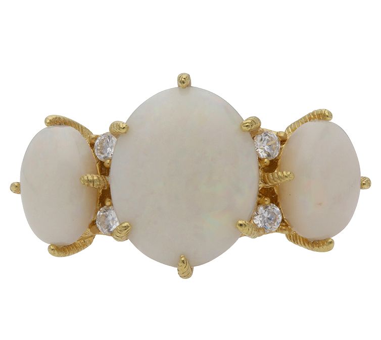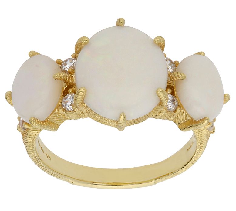 A trio of opal cabochons dominate this radiant ring, accented with cubic zirconia Diamonique simulated diamonds for a little extra sparkle. From Judith Ripka.