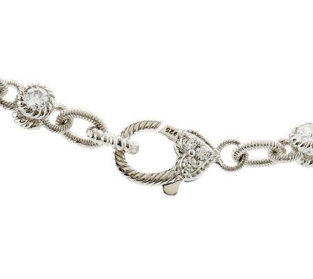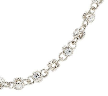 Pure brilliance. Tennis links get a modern update with this sterling 100-facet Diamonique(R) simulated diamond necklace from Judith Ripka. Double-sided, bezel-set Diamonique stations alternate with textured links for movement against the neck--simply gorgeous from every angle. The gemstones are cut with 100 facets for exceptional sparkle. From Judith Ripka.