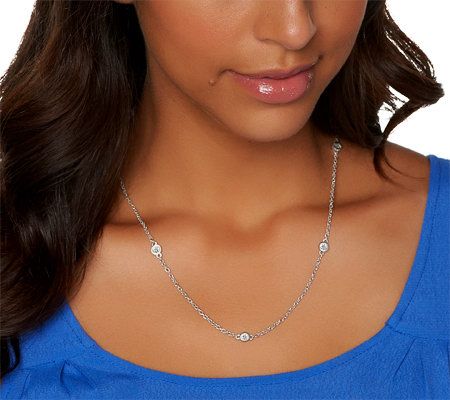 Pure brilliance. A luxurious look for every day, this stunning necklace from Judith Ripka turns up the sparkle with glittering stations of 100-facet Diamonique(R) simulated diamonds framed in berge textured borders along a textured cable-link chain. Layered with other necklaces or worn solo, this versatile accessory is a sophisticated way to elevate a casual ensemble or add elegance to your evening attire.