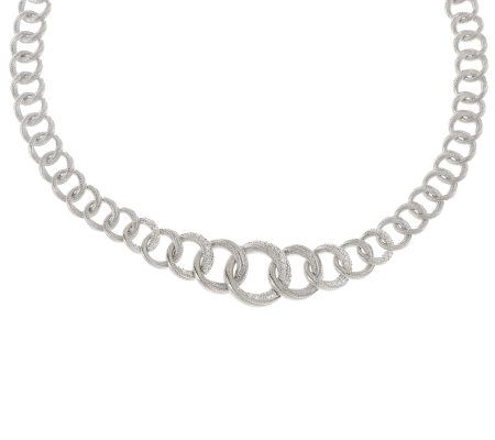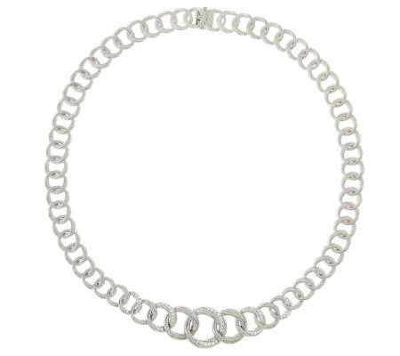 Give it a swirl. Fashioned in sterling silver with an intricate design of graduated, interlocking swirl circle links, this elegant necklace is a must-have for your everyday jewelry wardrobe. The lovely links move freely to curve and lay gracefully on the neckline, while the front links glisten with prong-set, round, clear Diamonique(R) simulated diamonds for a distinctive look. From Judith Ripka.