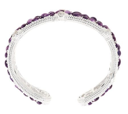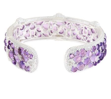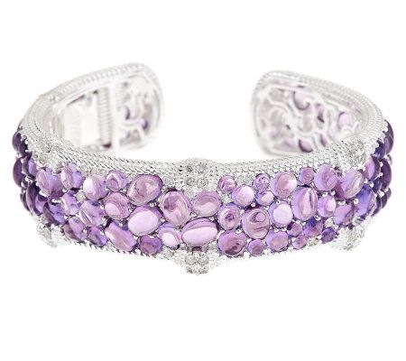 Wrist watch. You won't be able to take your eyes of this stunner of a cuff bracelet. Gorgeous amethyst cabochons deliver lovely color, while Diamonique(R) simulated diamonds add attention-grabbing sparkle. From Judith Ripka.