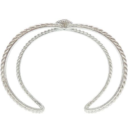 Cuff design; heart-shaped center filled with Diamonique simulated diamonds; openwork design; twisted berge textures