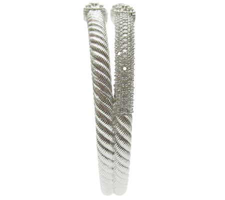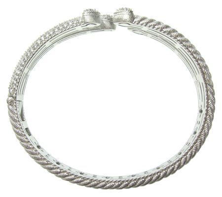 All heart. There's a lot to love about Judith Ripka's sterling silver cuff. Wrap your wrist in its tapered design of four textured stems completed with shimmering hearts. Each heart and two of the stems are enhanced by pave-set cubic zirconia Diamonique(R) simulated diamonds. From Judith Ripka.