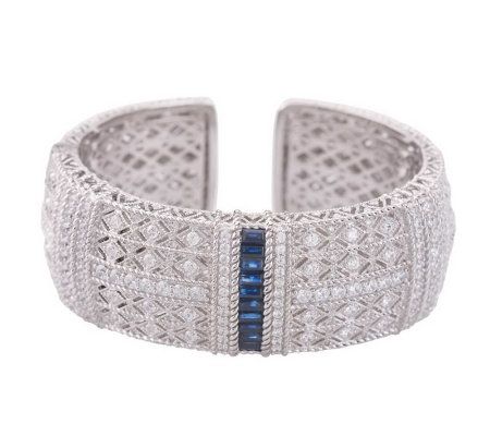 You've inherited attitude...and it shows every time you step out in this statement-making cuff bracelet! Crafted of sterling silver, it shimmers with the glow of bead-set Diamonique(R) simulated diamonds and estate-style texture. Two outer stations of bead-set Diamonique simulated diamonds and a center station of channel-set, baguette-cut gemstones add distinctive detailing. From Judith Ripka.