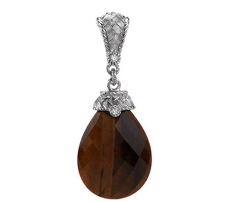 Cool metals and warm earth tones come together beautifully in this elegant enhancer. The richly hued tiger's-eye--faceted for maximum shine--dangles from beneath a sterling silver crown studded with radiant Diamonique(R) simulated diamond accents. Judith Ripka.