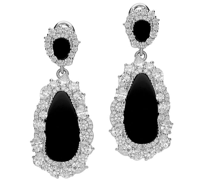 • Organic-shaped black onyx slice in center; clusters of Diamonique simulated diamonds; berge texture