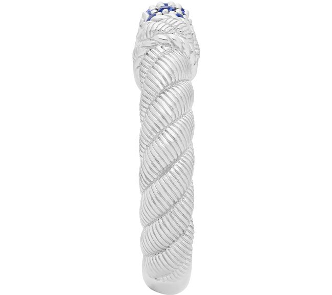 • Stackable design; pave-set blue sapphire gemstones at center of twisted-rope berge motif
