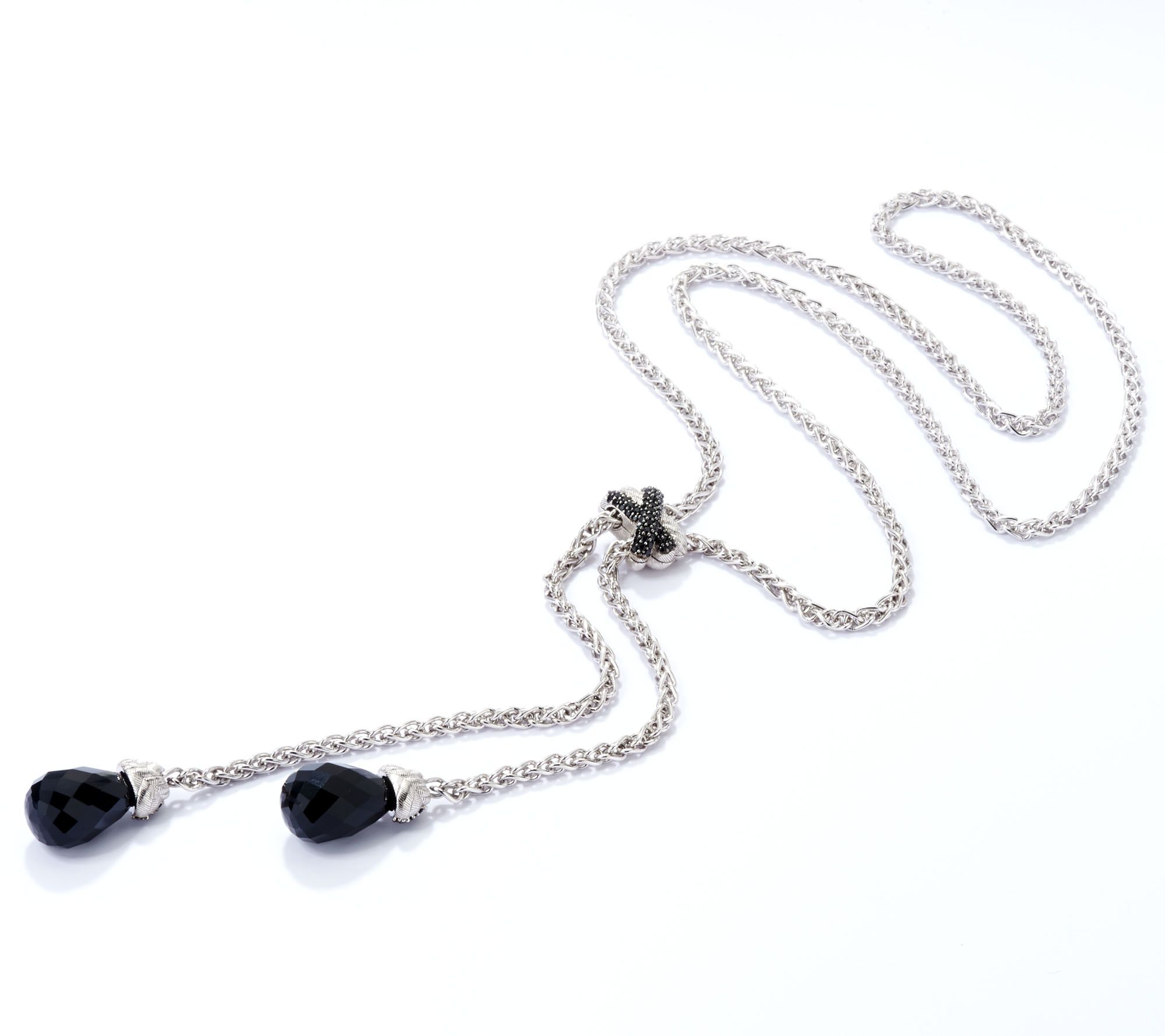 Judith Ripka Sterling Rock Crystal Quartz or Onyx Faceted Drop Necklace