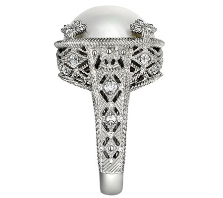 Make an impression each time you don this gorgeous sterling silver Judith Ripka ring. A round, cultured freshwater mabe pearl is complemented by Diamonique(R) simulated diamond accents on the prongs. From Judith Ripka.