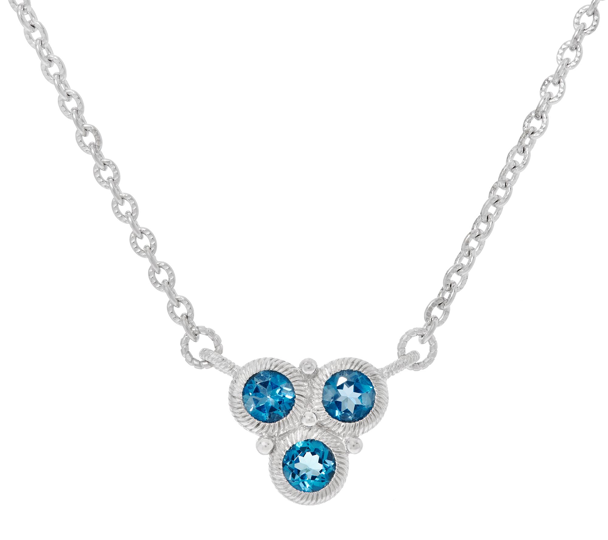 Instant color! Judith Ripka's sterling silver necklace receives its luxurious luster via a trio of gemstones that are fabulously framed by rope, berge, and bead details. This brilliant focal point is suspended from a textured oval-link chain. From Judith Ripka.