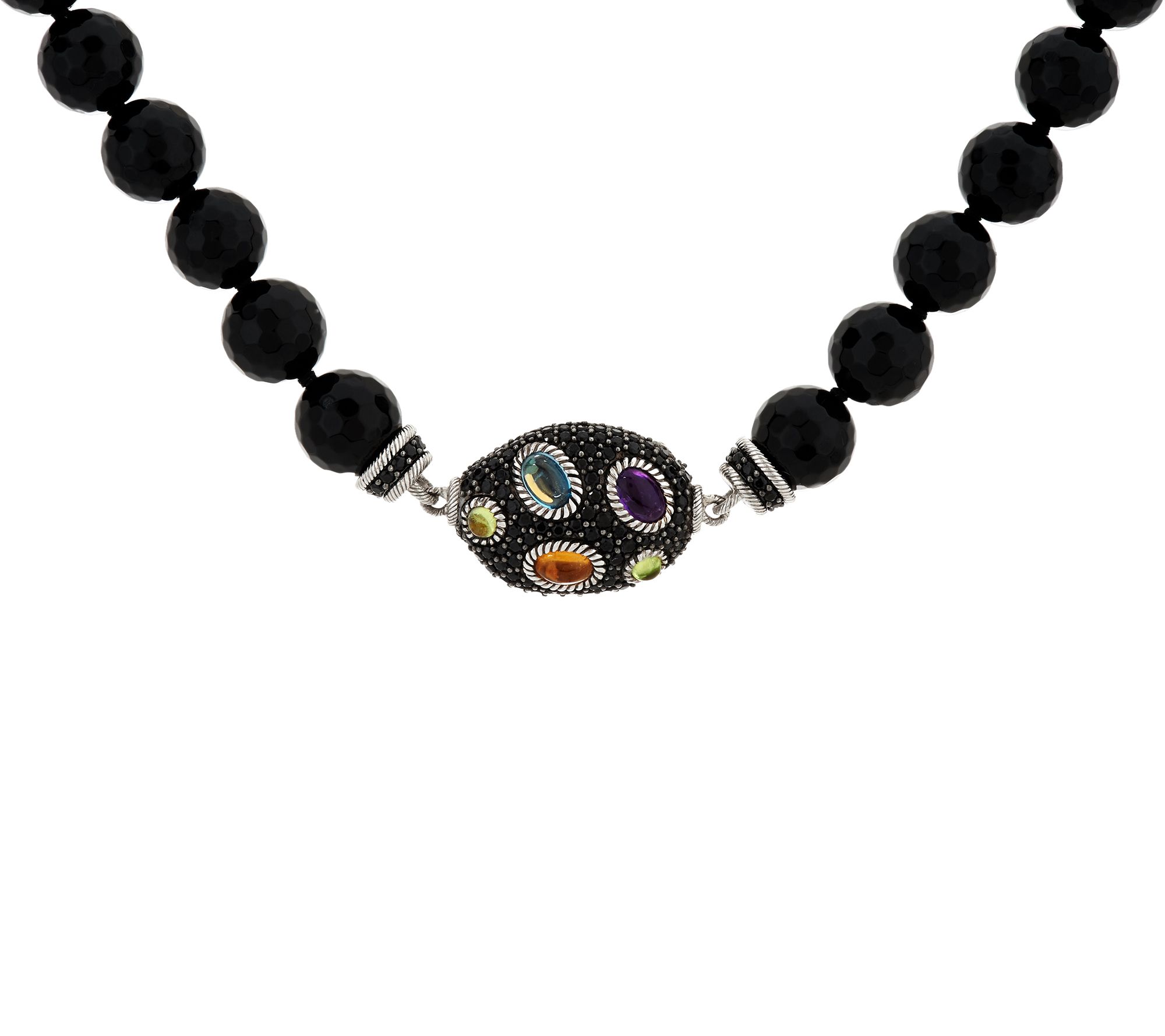For a distinctive design and richness in both color and detail, this onyx bead and gemstone necklace hits the mark. From Judith Ripka.