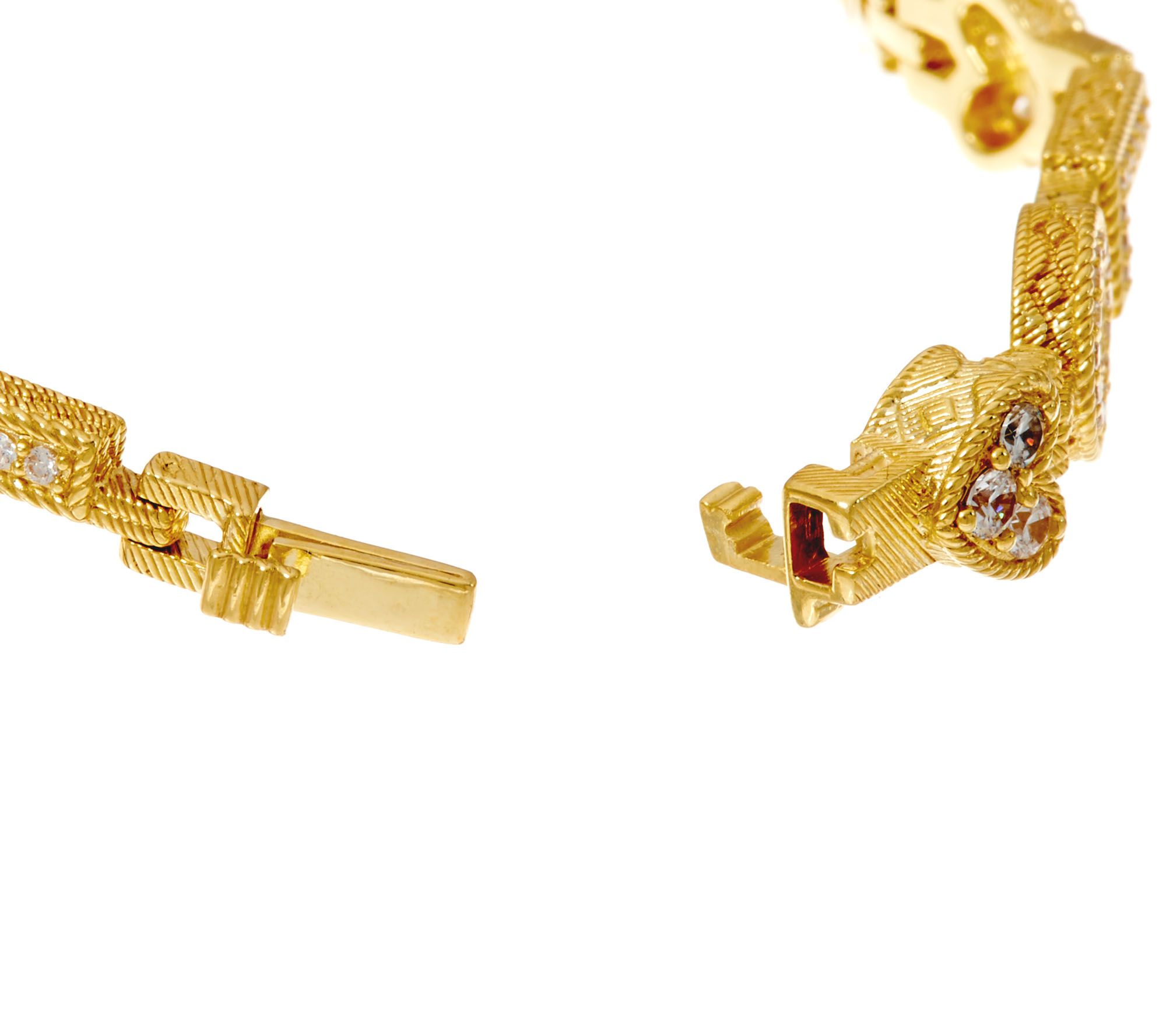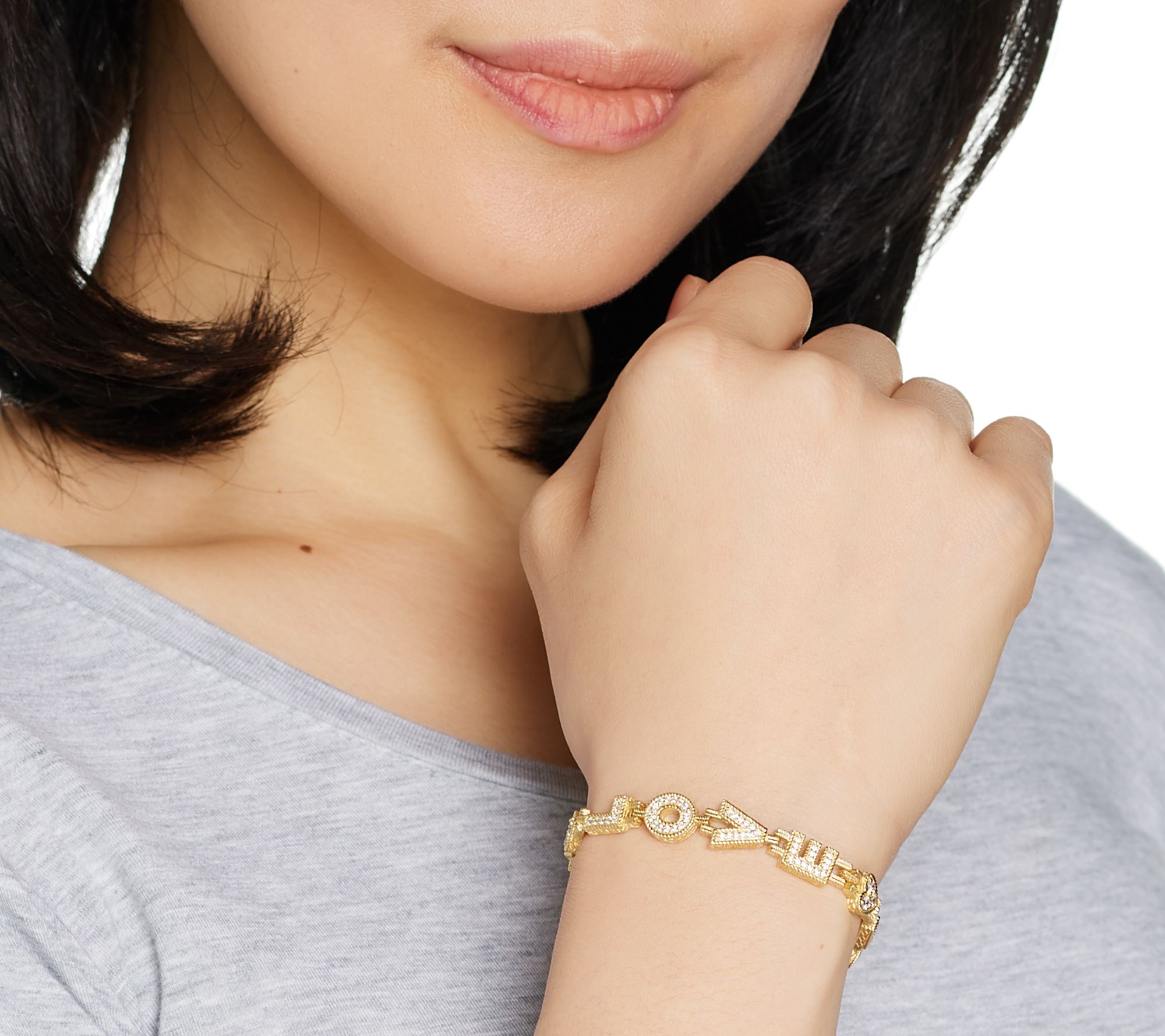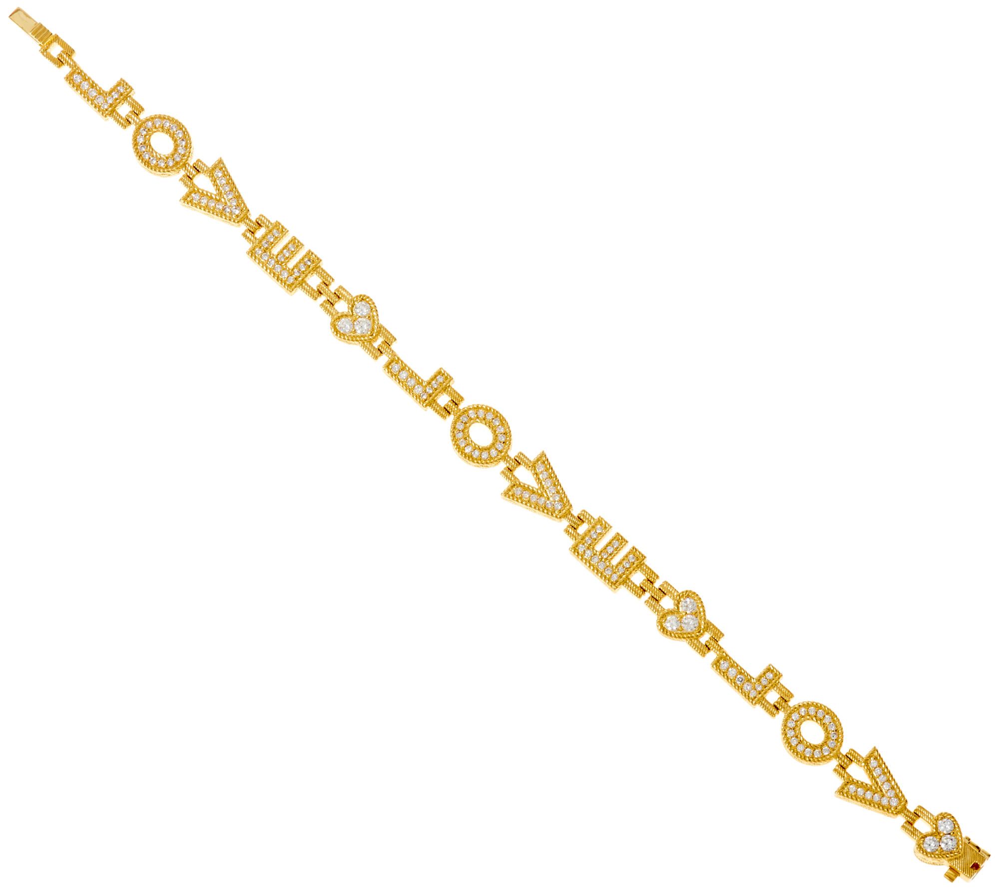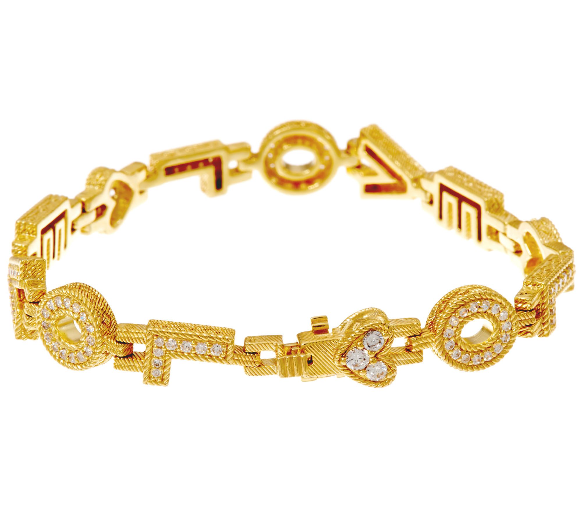 Embrace the inspirational elegance of this stunning Judith Ripka bracelet. Rope and estate motifs weave their way around the love design--with cubic zirconia Diamonique simulated diamonds shining from every letter. From Judith Ripka.