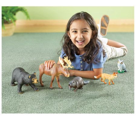 • Includes moose, bear, fox, beaver, owl, and storage box with carrying handle