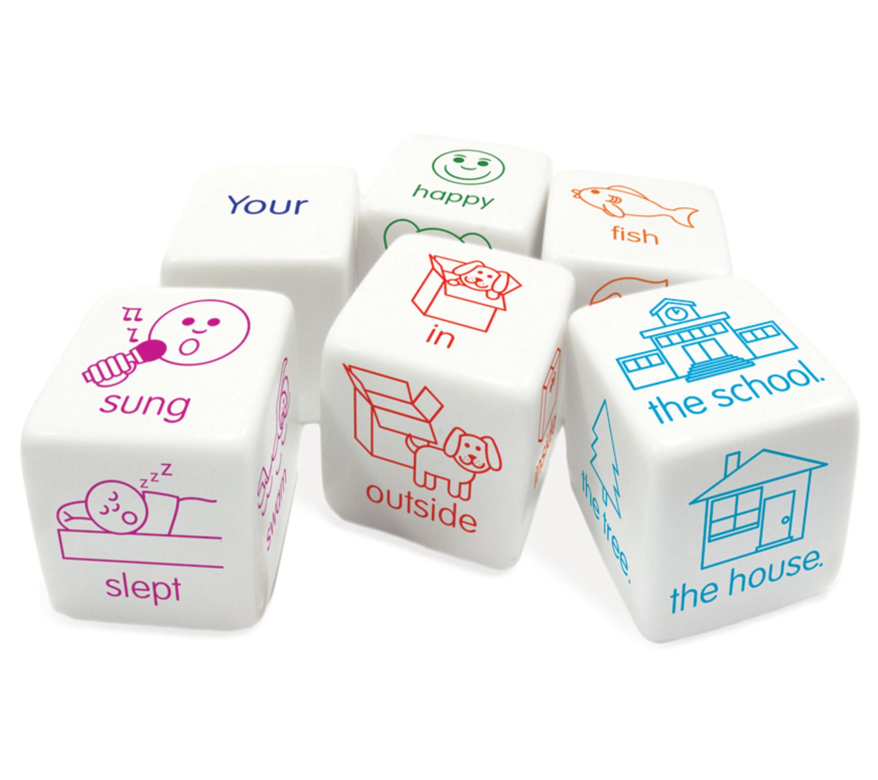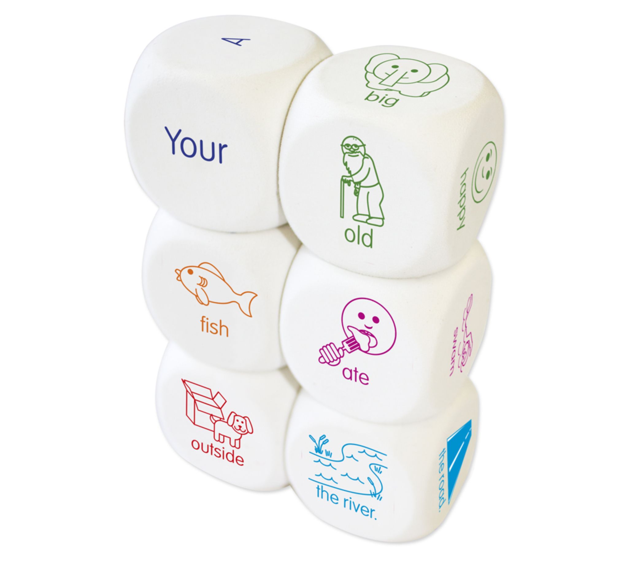 Build your child's vocabulary and help them form sentences with this collection of six soft dice that cover different parts of speech (such as nouns, verbs, and prepositions). From Junior Learning.