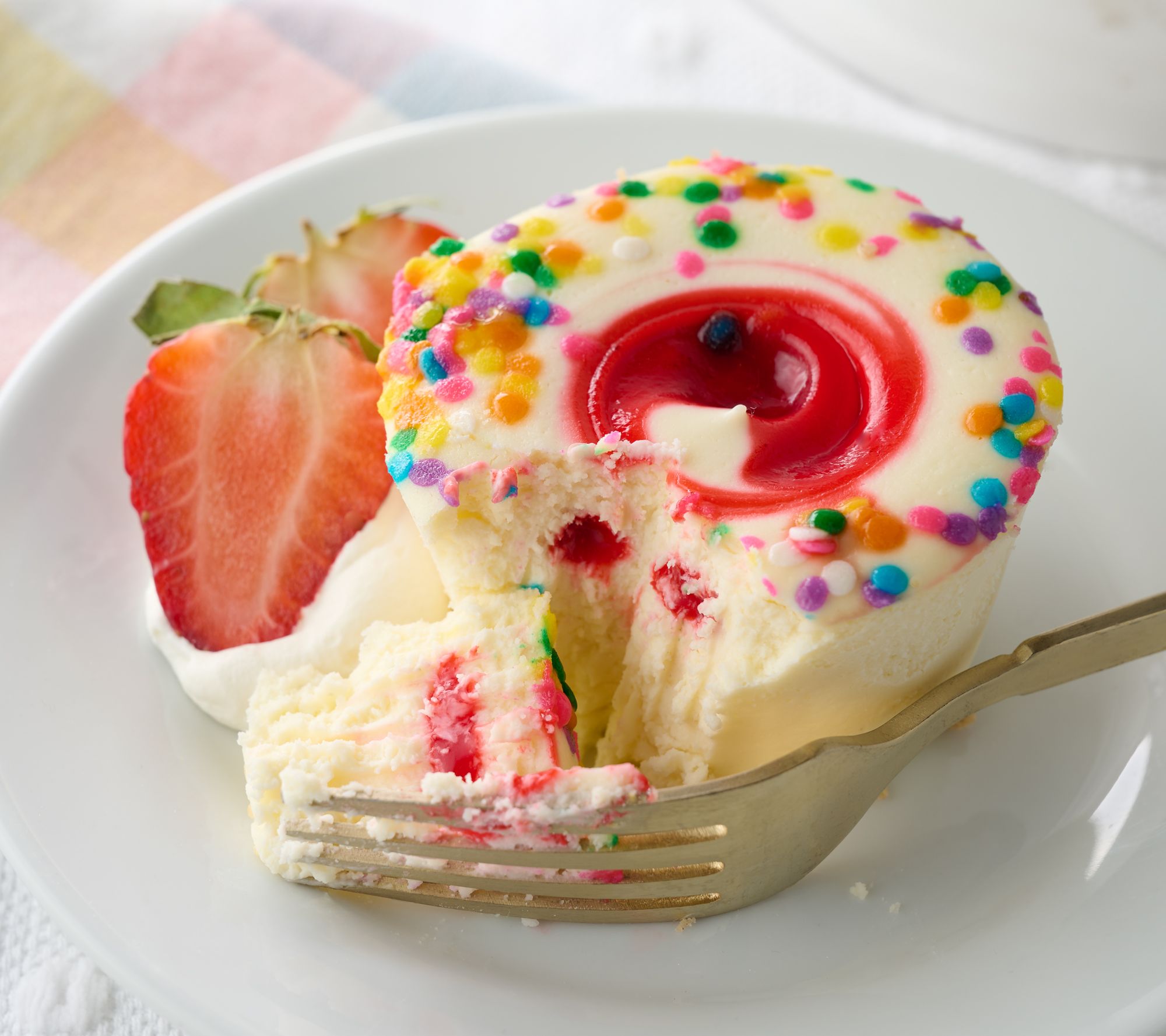 1st shipment: Easter: six Easter swirl with strawberry puree topped with confetti sprinkles, six blueberry crumb, and six carrot cake mini cheesecakes