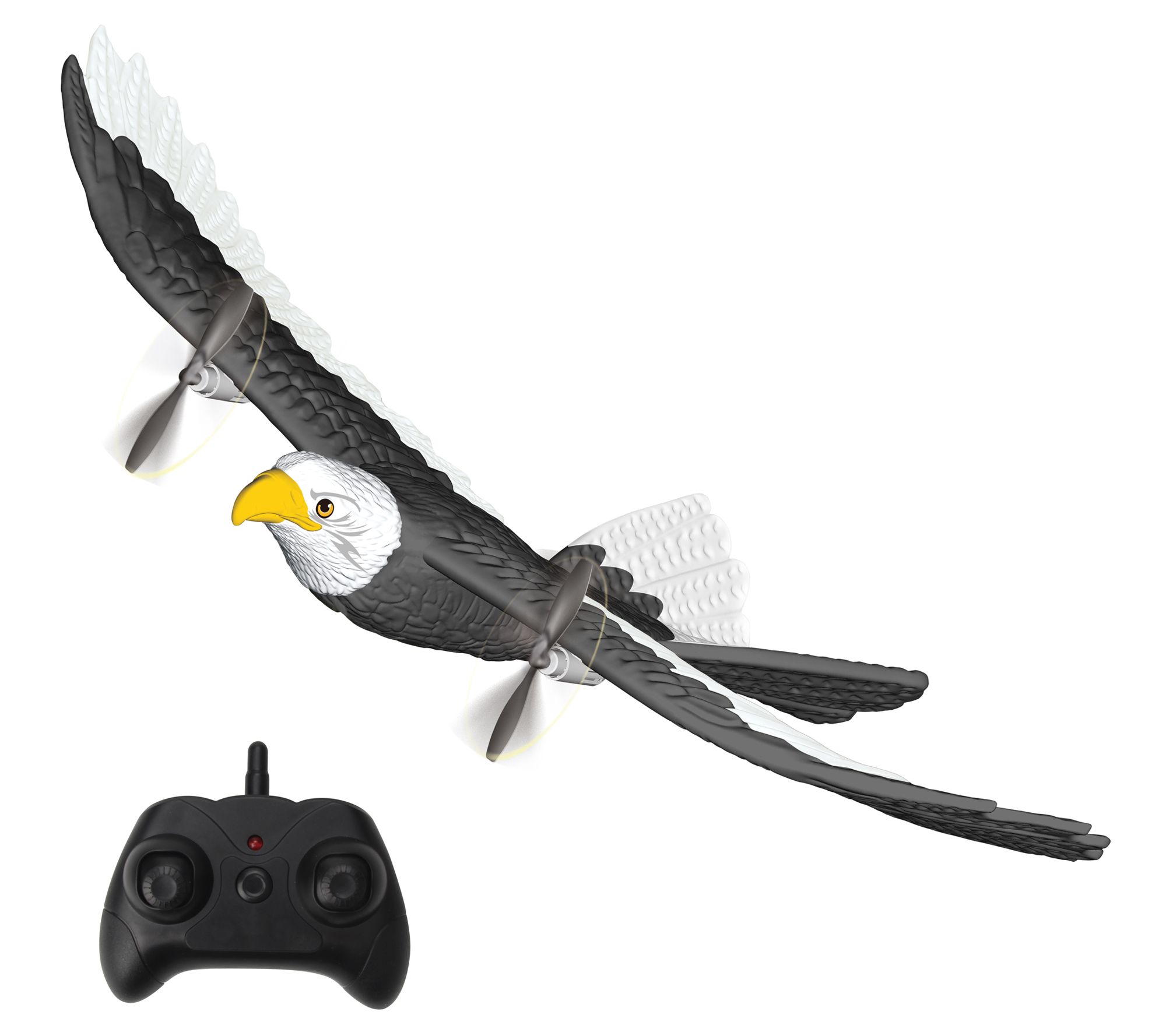 Explore the sky or zoom around the house with this RC bald eagle, featuring a durable body, landing wheels, and a USB rechargeable battery for hours of soaring fun. From Jupiter Creations.