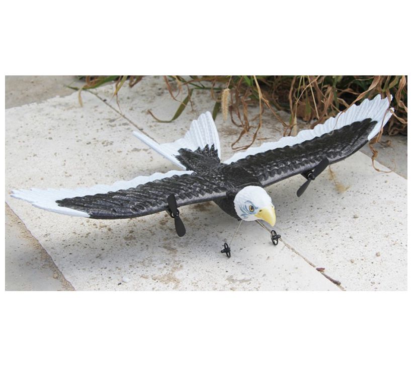 • Includes RC bald eagle glider, 2.4G remote control, two extra propellers, USB charging cable, rechargeable battery, two front wheels, back wheel, and manual