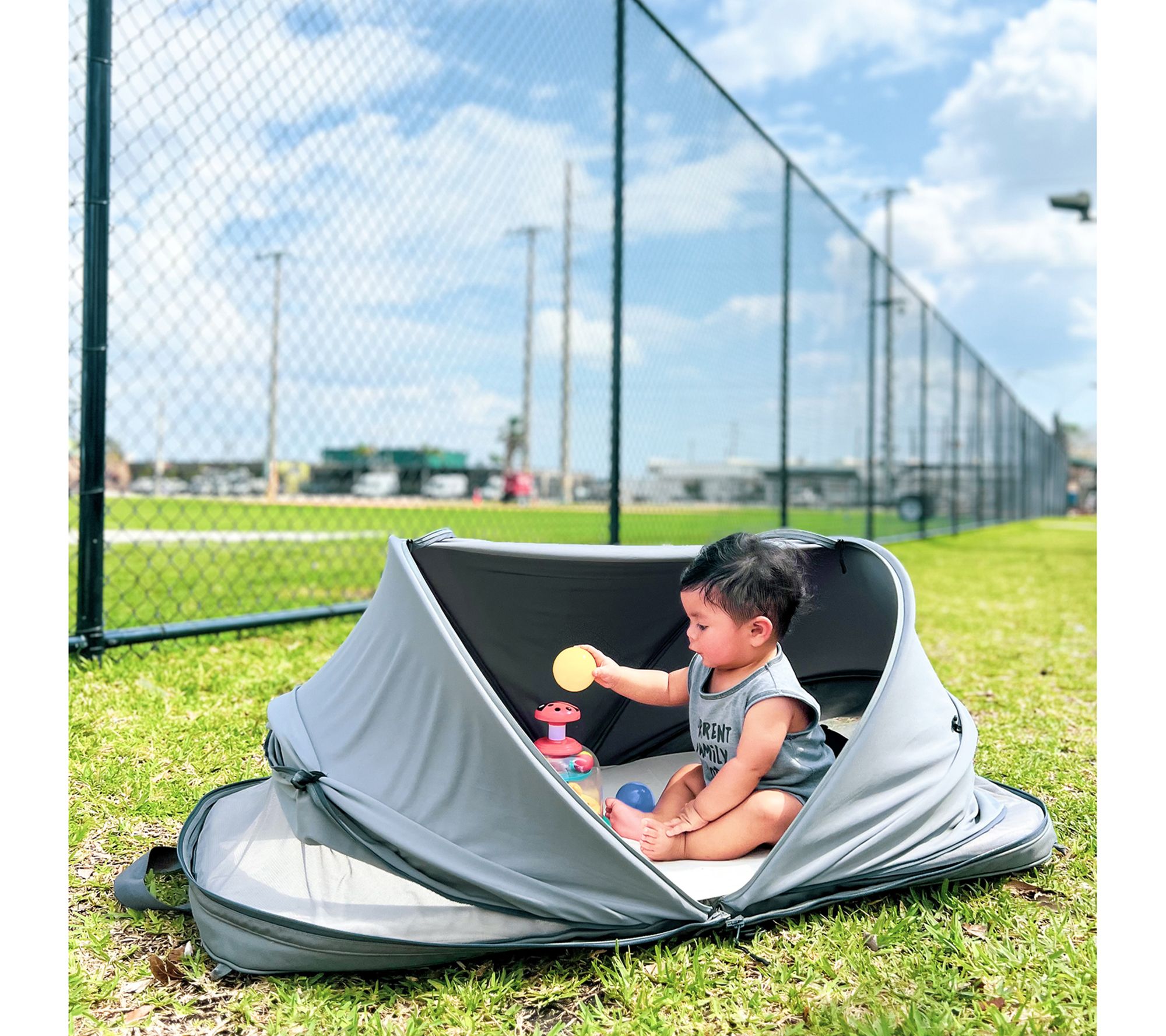 The Kalencom MyOwnSpace portable sleep pod offers a comfortable and convenient napping solution for your little one, whether you're at the beach, camping, or visiting a park. With its easy pop-open design, this sleep pod is ready to use in seconds and features a luxurious bamboo fitted sheet and a custom Moonlight Slumber mattress for ultimate comfort. From Kalencom.